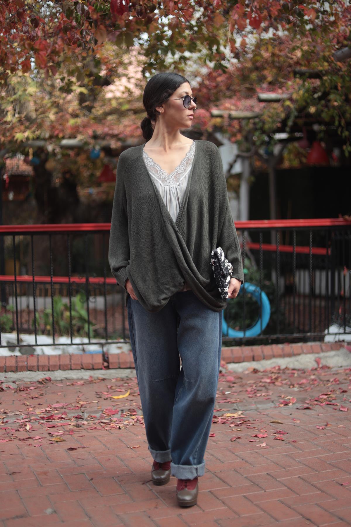 Haki Önü Çapraz Triko Tunik