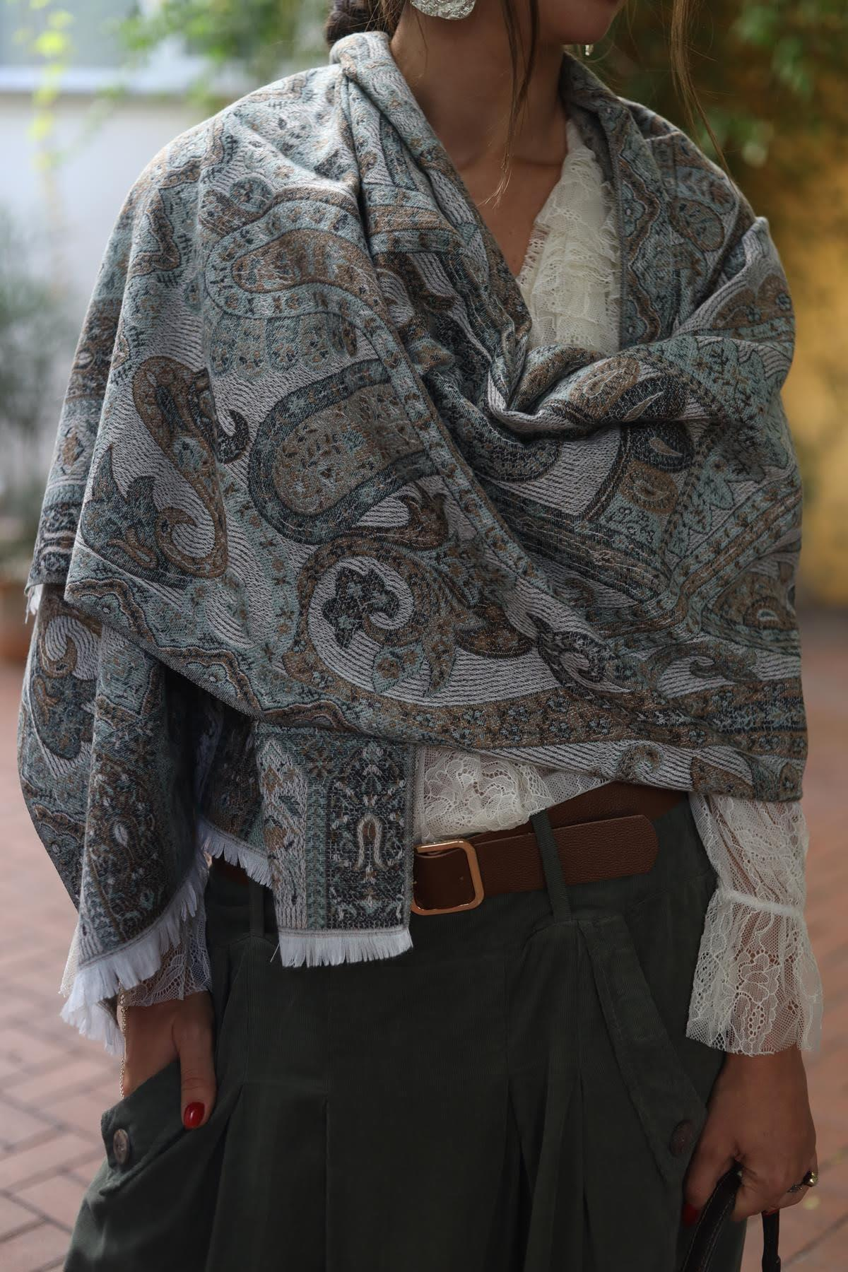 Haki Otantik Desenli Kaşmir Şal (ASL-FAL-003-PA-HA-STD)