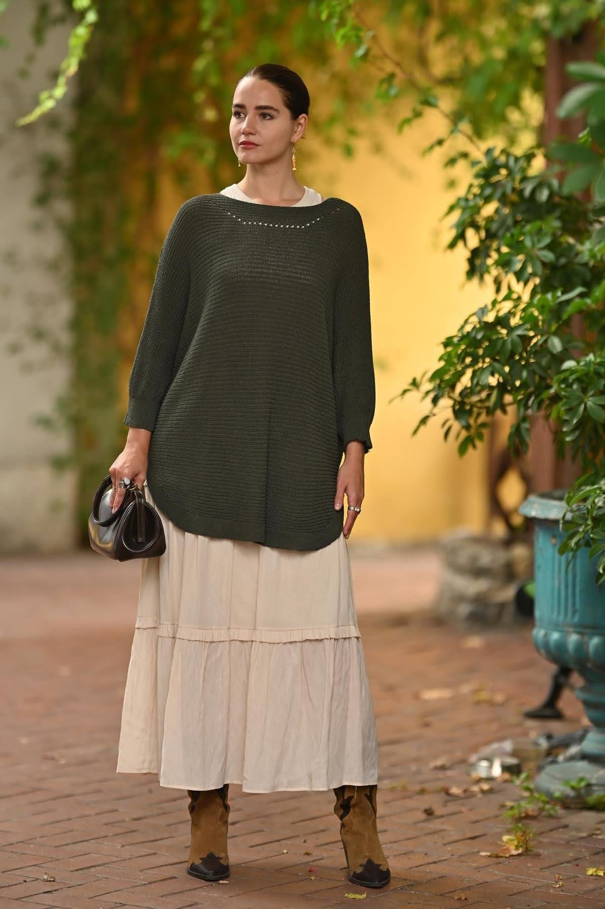 Haki Yakası Ajurlu Selanik Tunik (KTNK-LAM-011-AK-HA-STD)