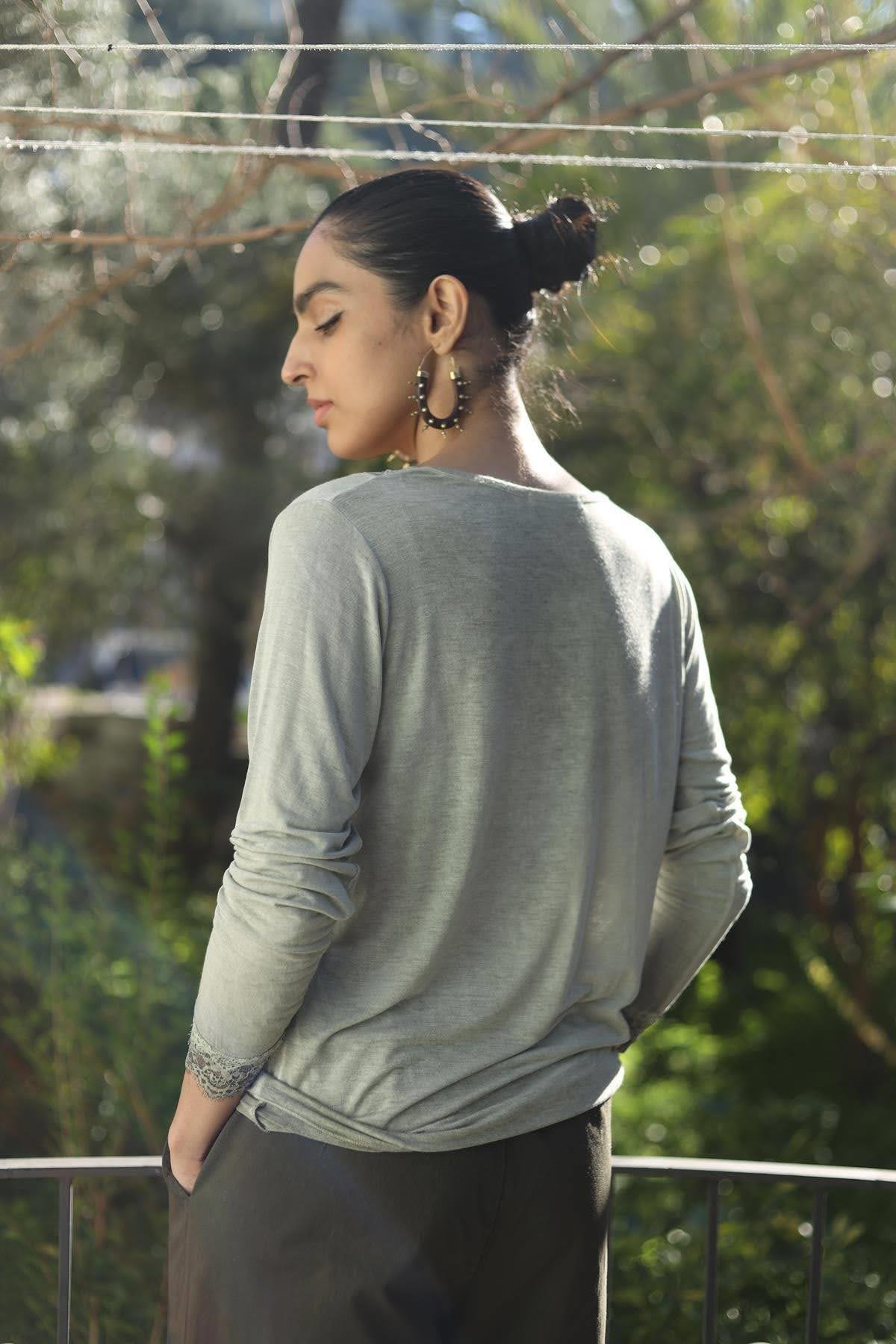 Haki Yakası ve Manşetleri Dantelli Modal Bluz (KB-SIT-014-MOD-HA-STD)