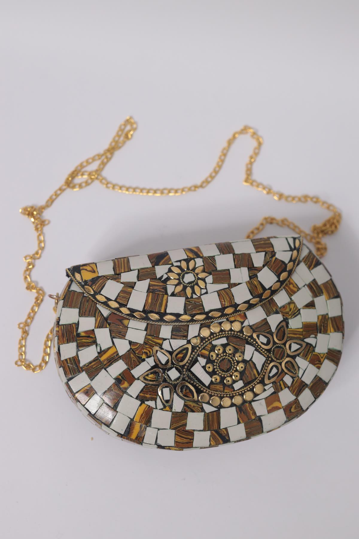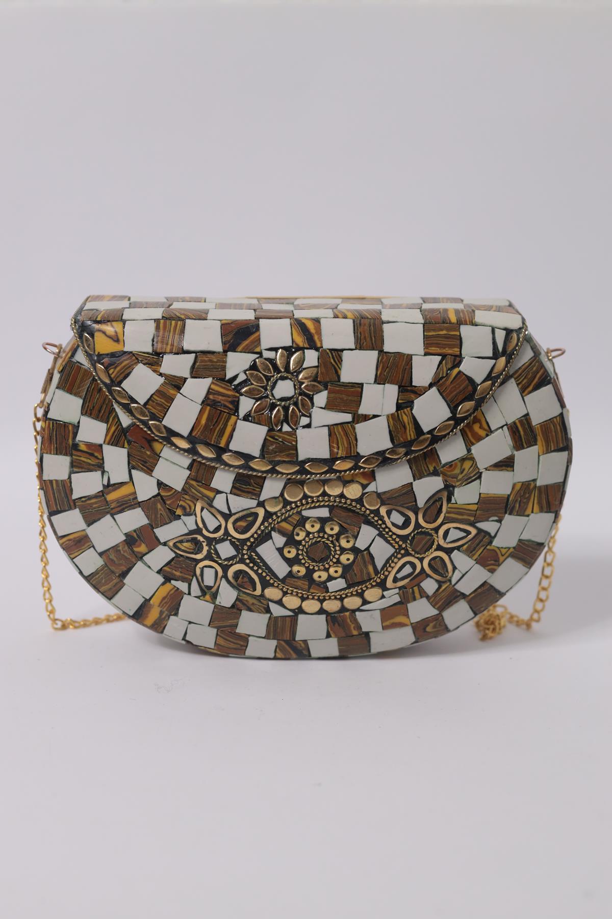 Hardal Beyaz Taşlı Özel Tasarım Çanta (ACNT-AS-016-MTL-HAR5-STD)