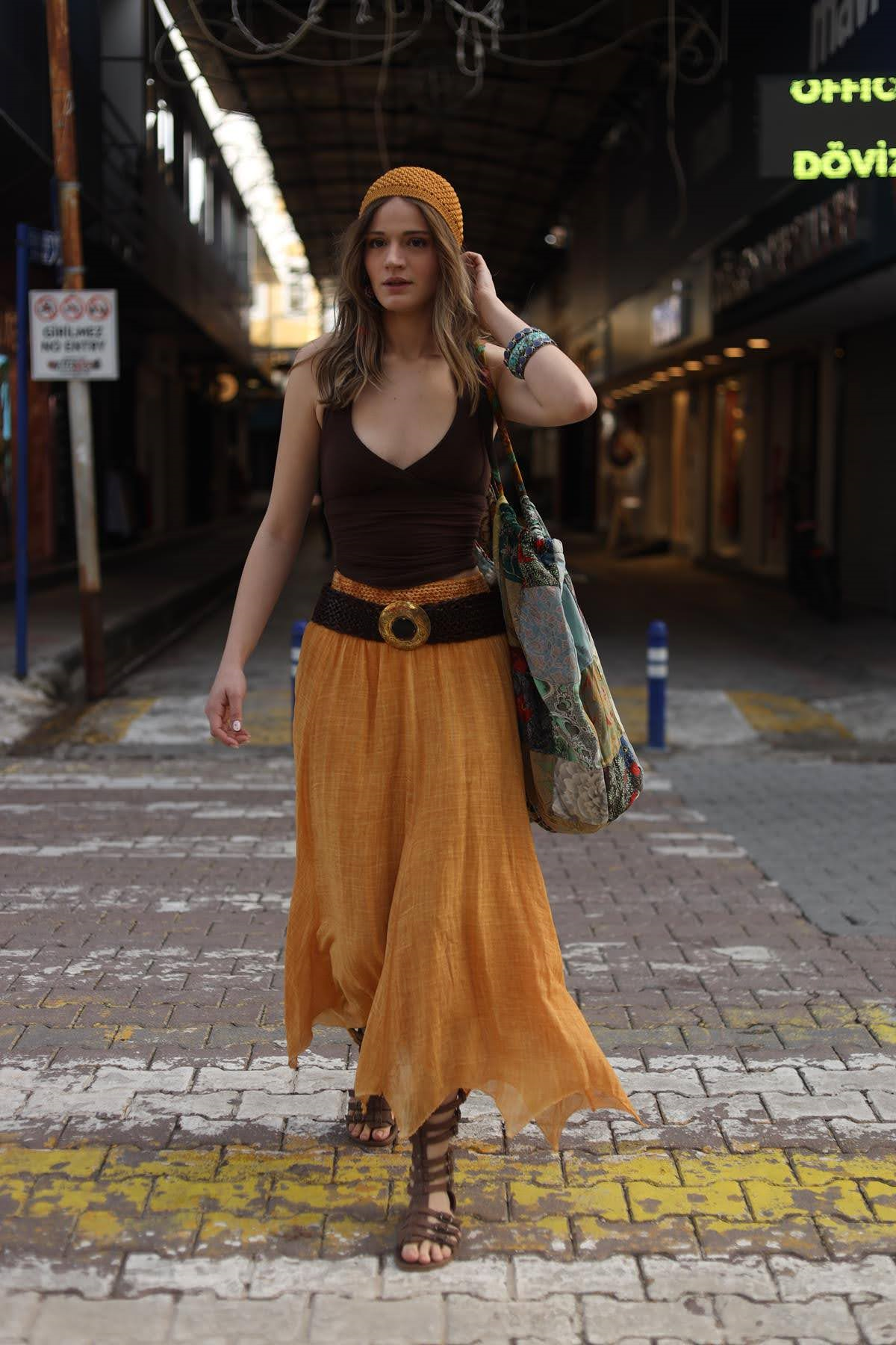 Hardal Rengi Beli Gipeli Asimetrik Kesim Etek