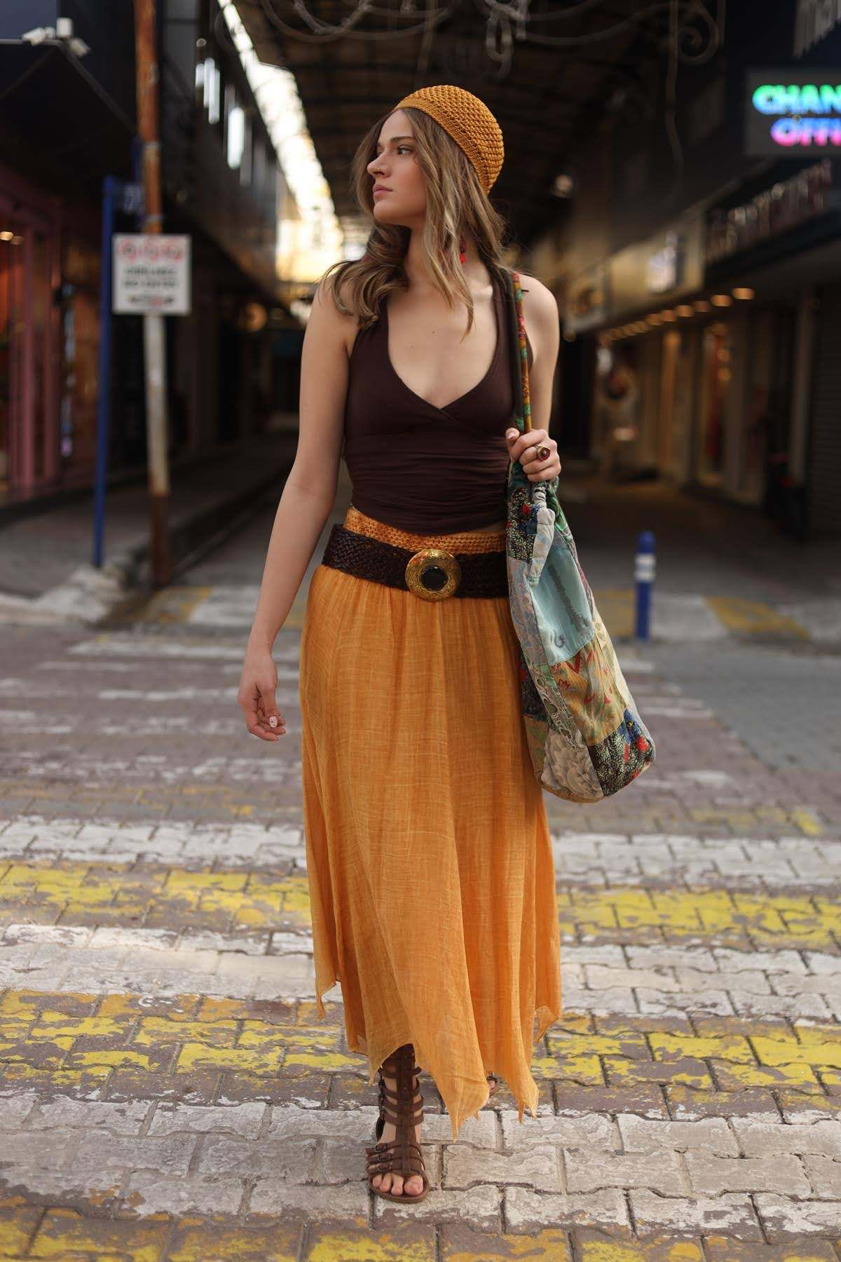 Hardal Rengi Beli Gipeli Asimetrik Kesim Etek (KET-TRO-001-PA-HAR-STD)