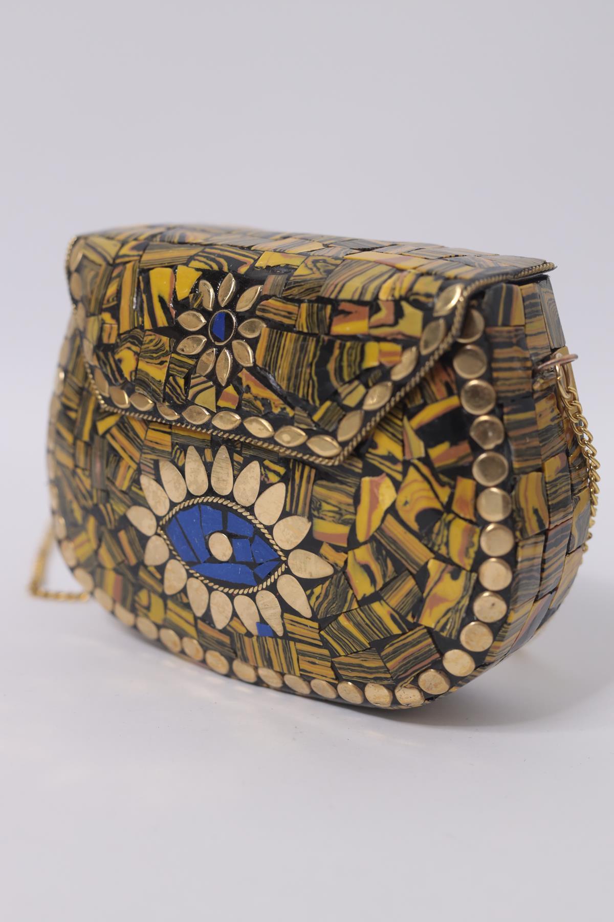 Hardal Rengi Taşlı Özel Tasarım Zarif Çanta