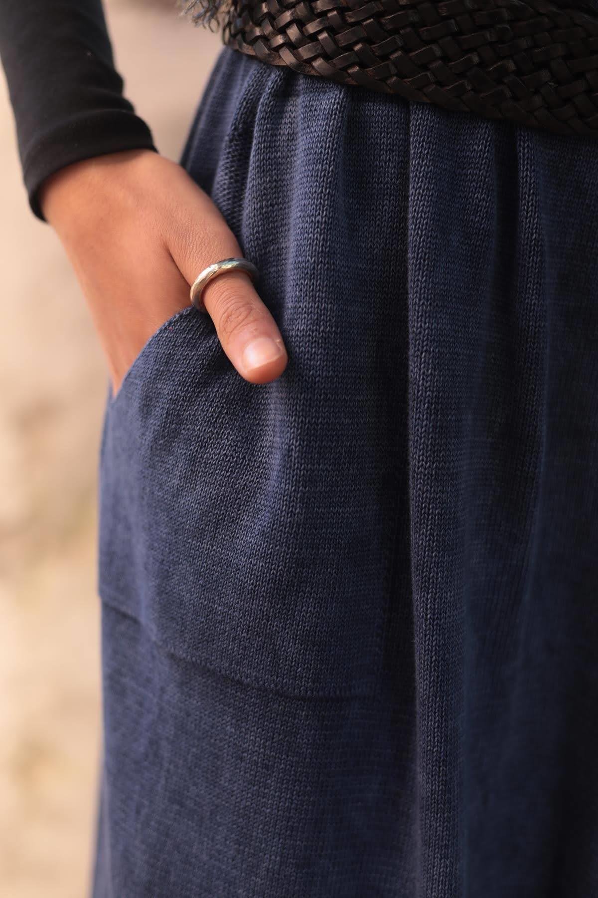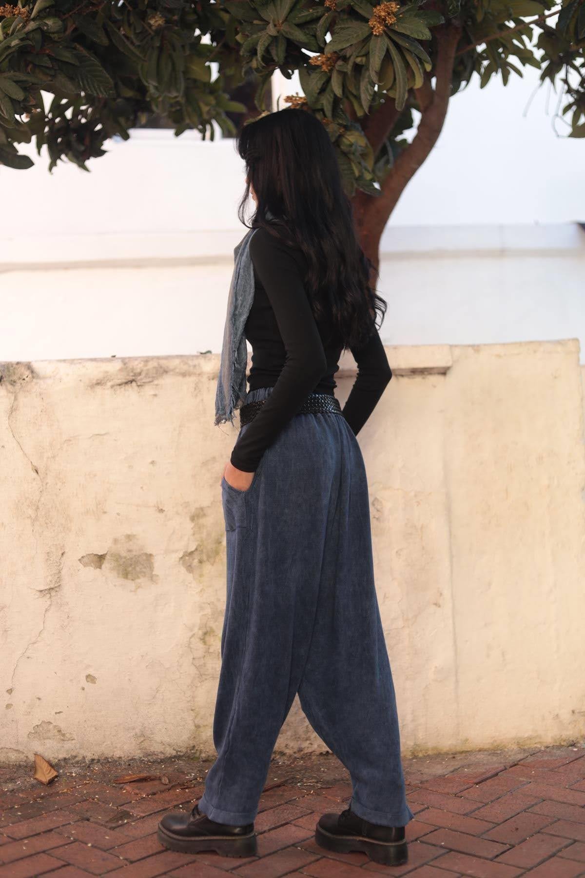 İndigo Mavi Yıkamalı Triko Şalvar