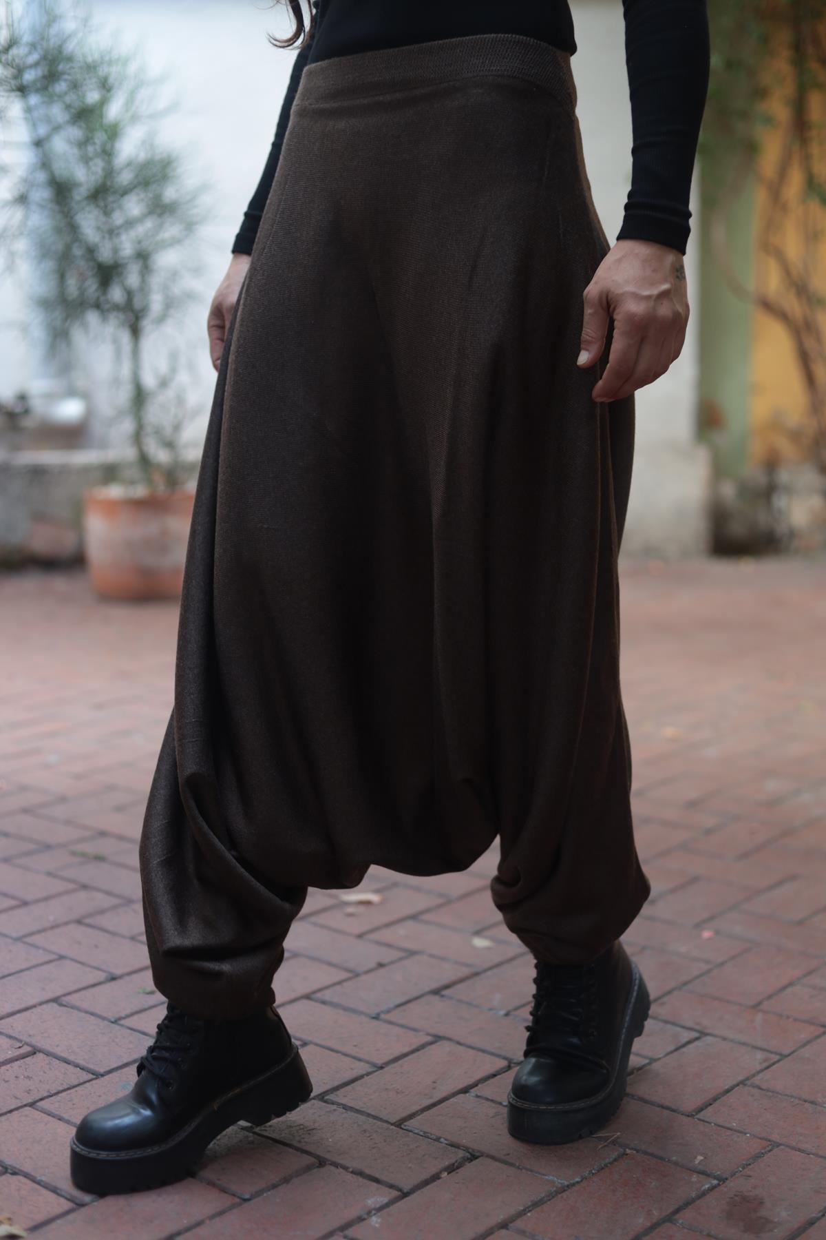 Kahverengi Beli ve Paçası Lastikli Triko Şalvar (KS-LAM-005-AK-KA-STD)