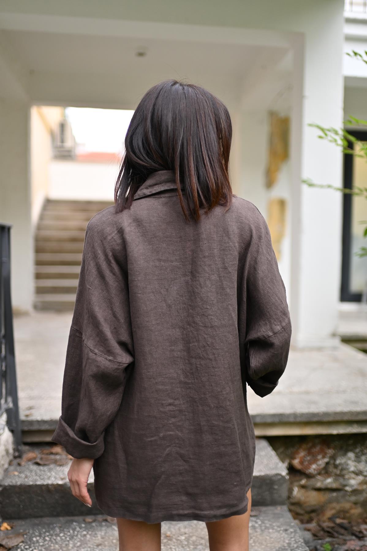 Kahverengi Blazer Yaka Keten Ceket (KC-FAL-019-KTN-KA-STD)