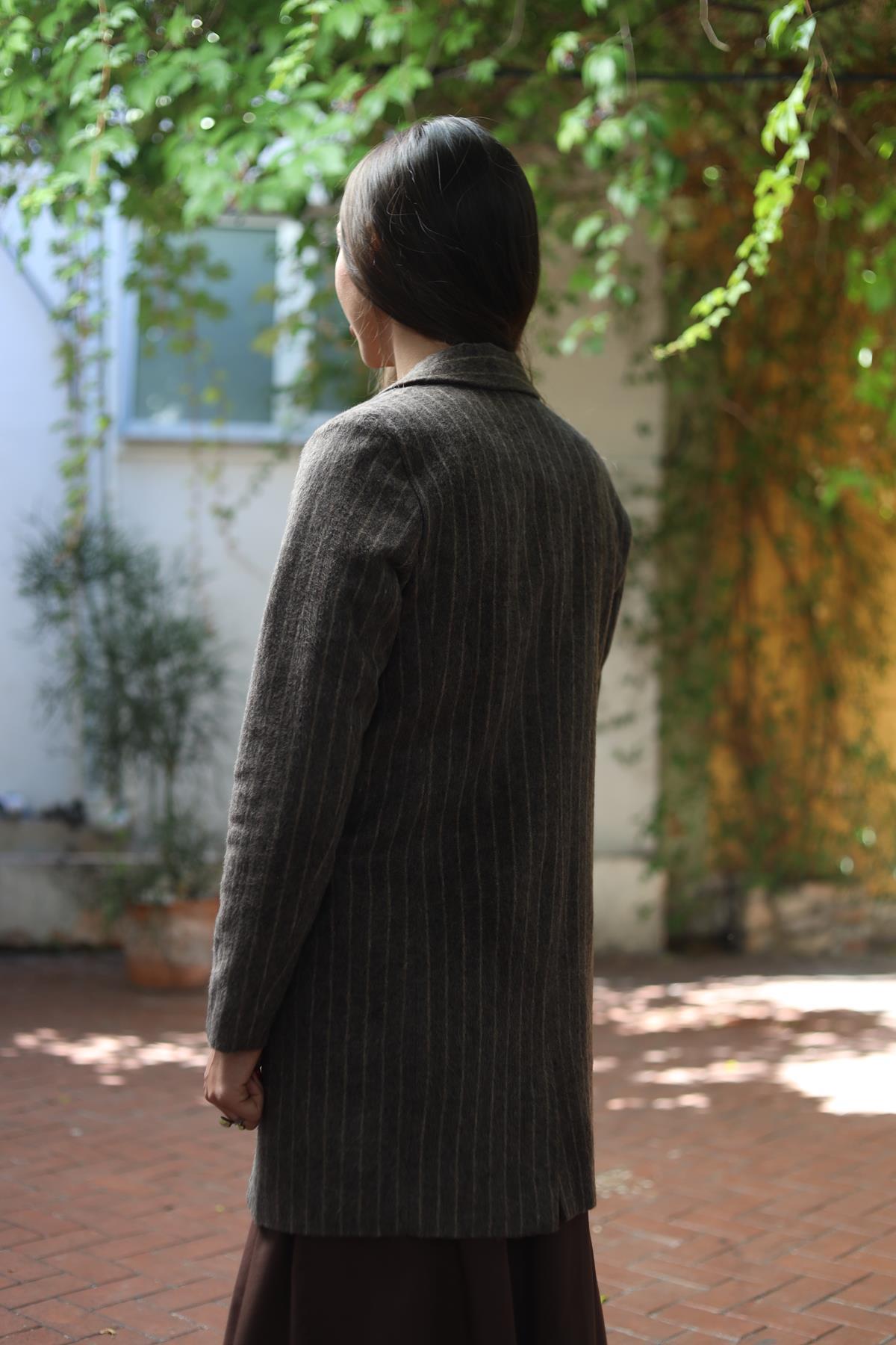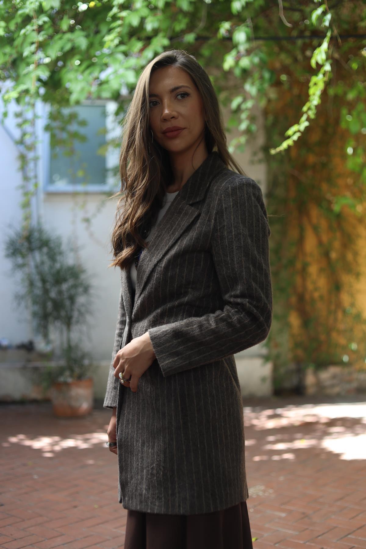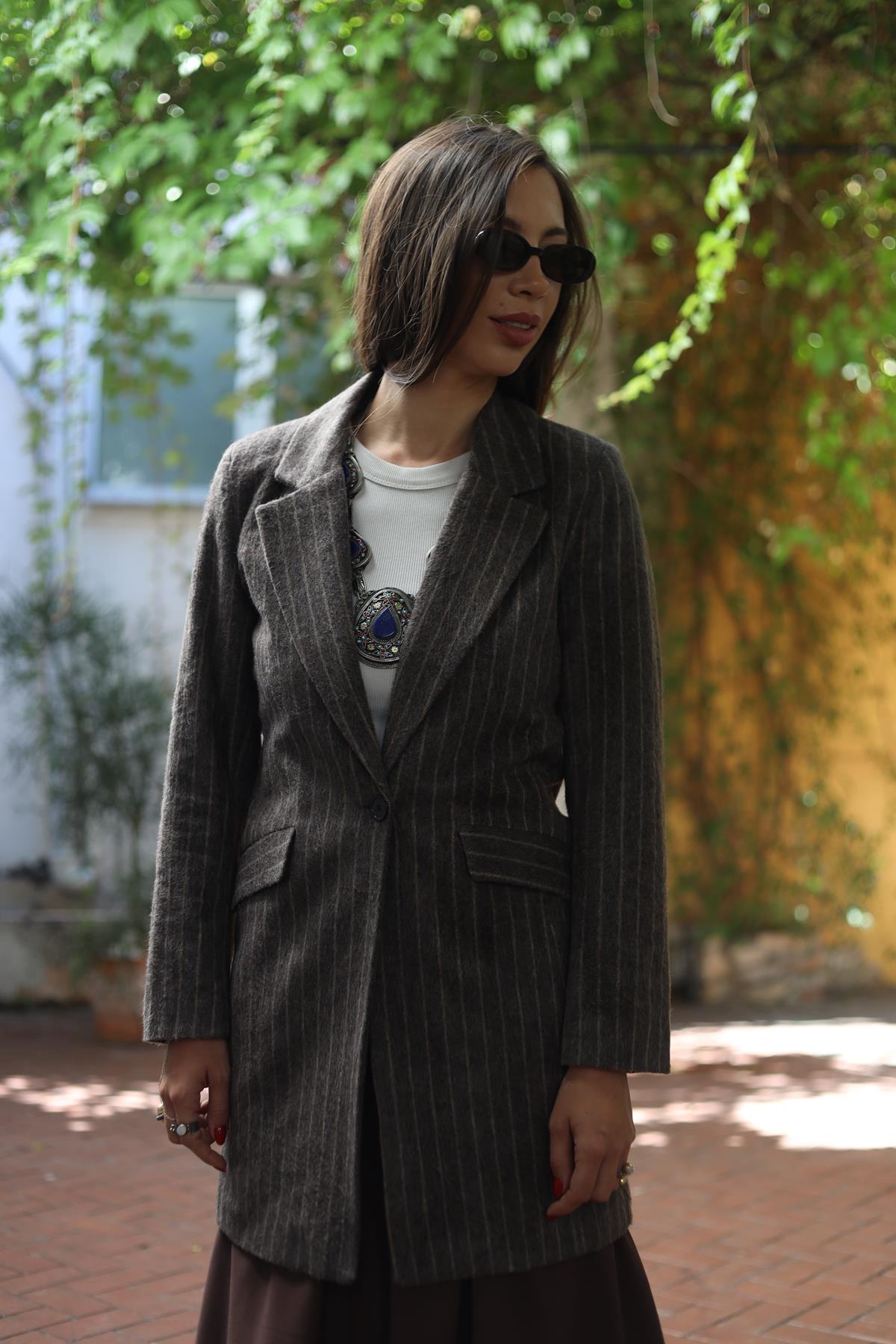 Kahverengi Çizgili Uzun Kaşe Ceket
