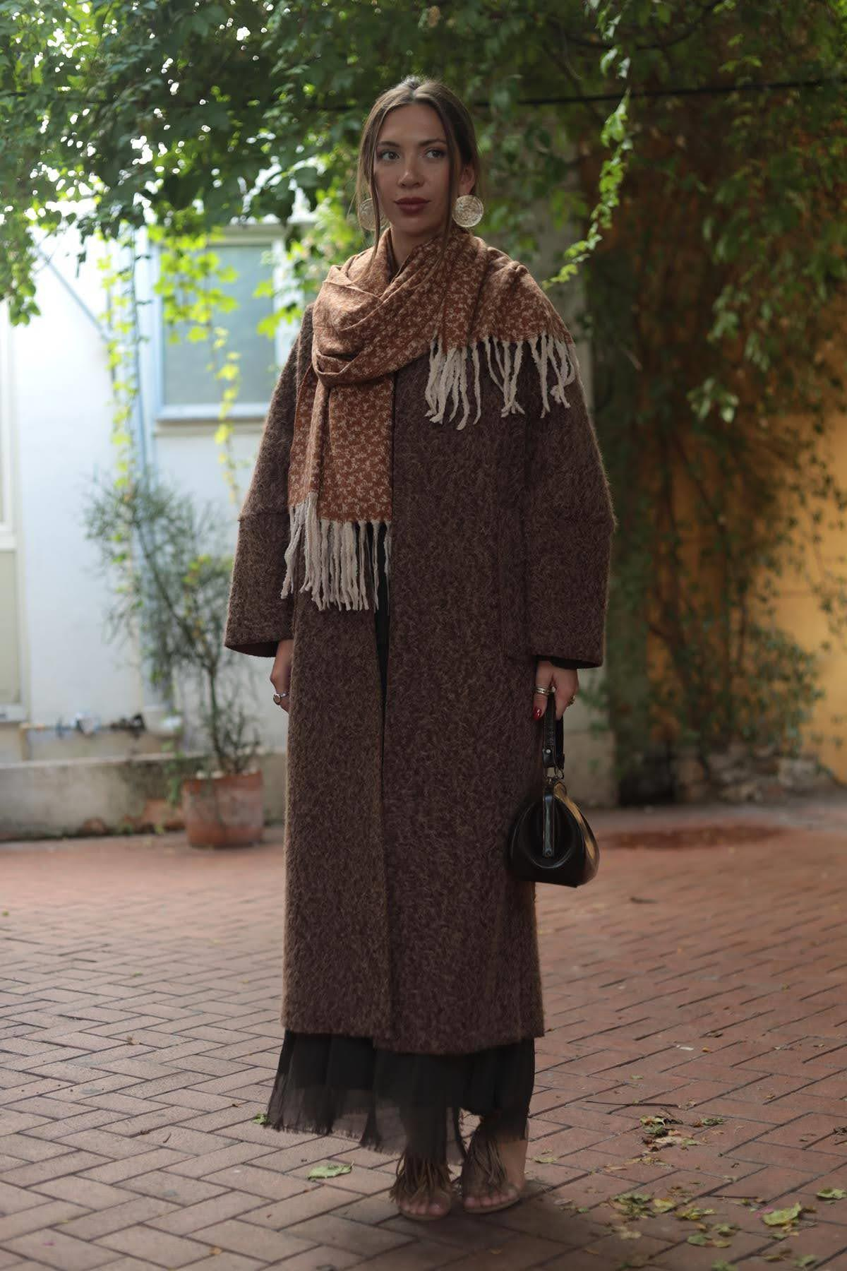 Kahverengi Dikiş Detaylı Keçe Kaban (KKBN-PM-007-PO-KA-STD)