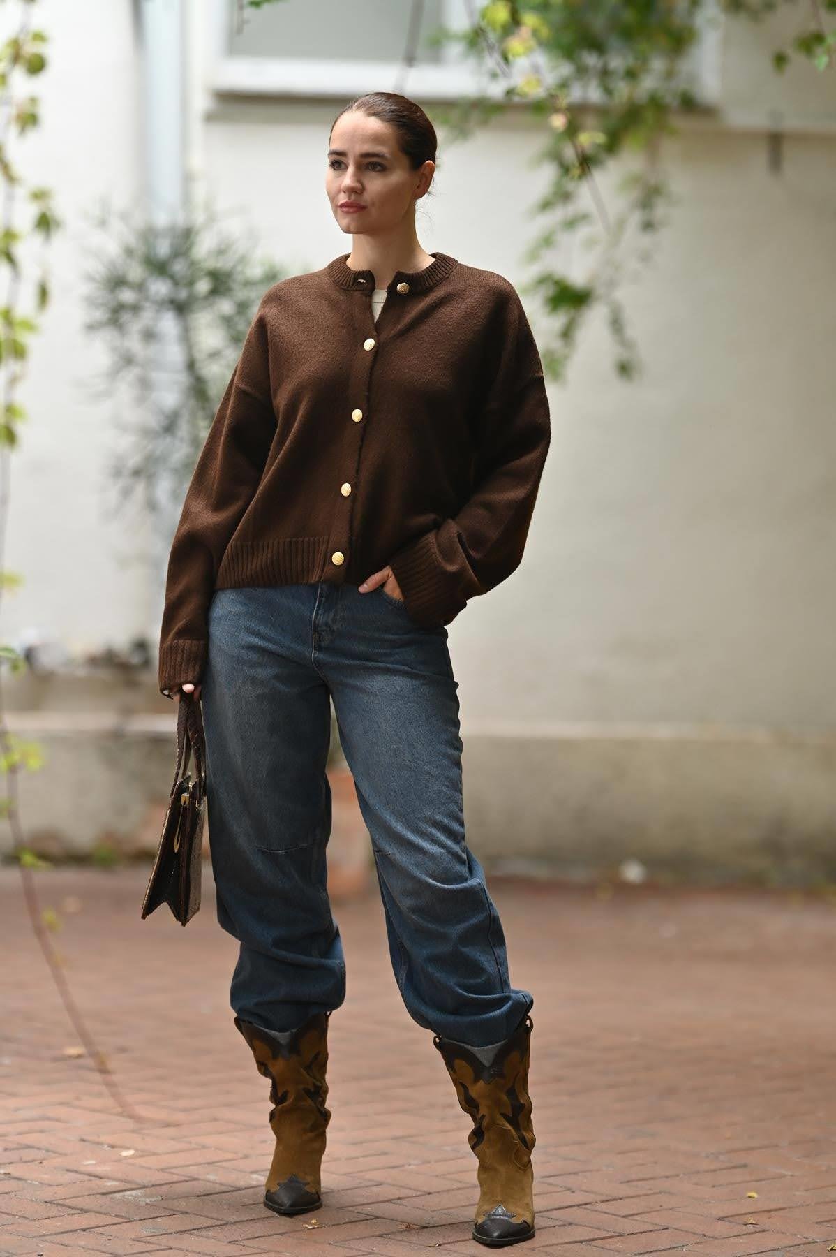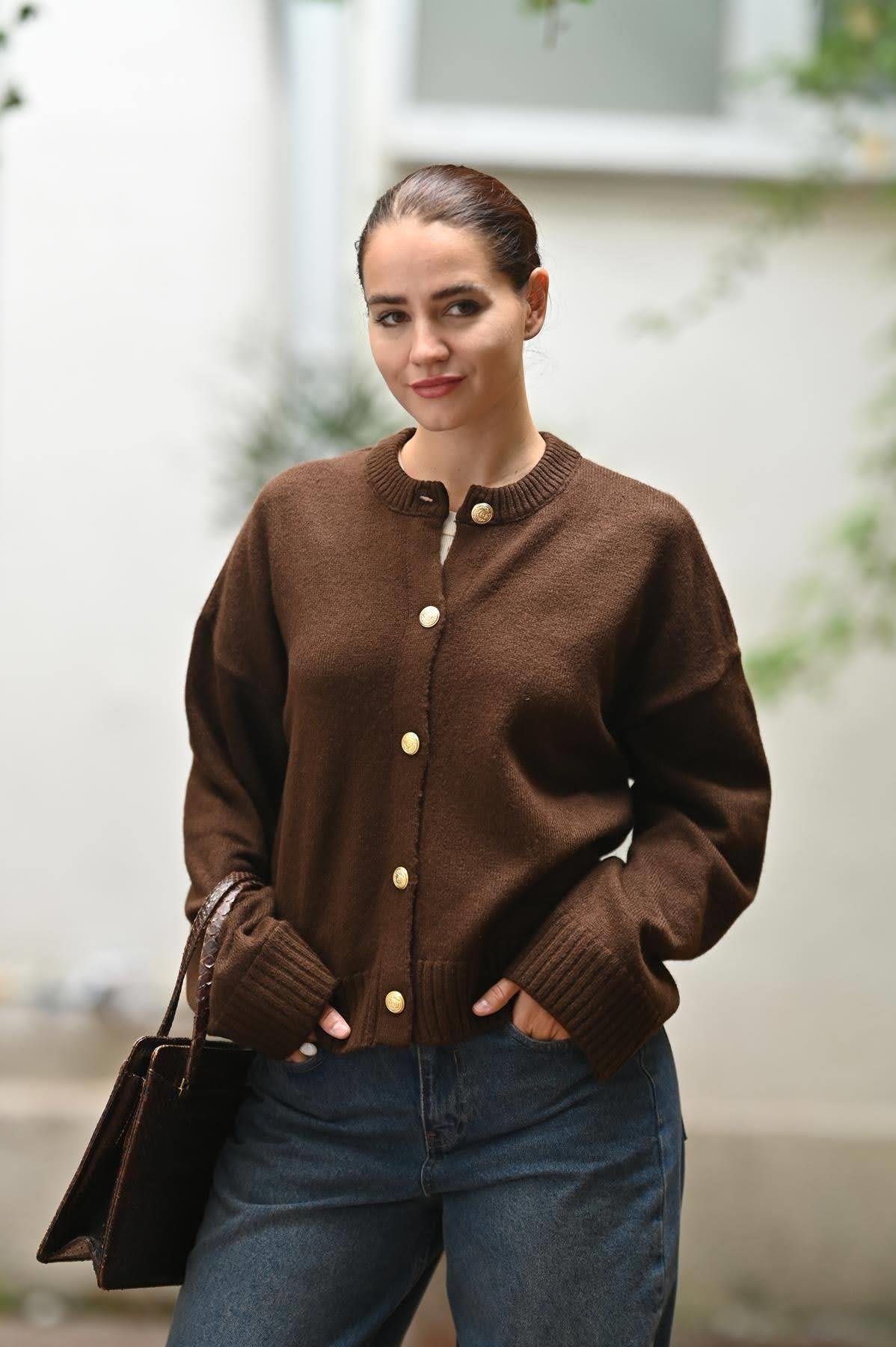 Kahverengi Düğme Detaylı Triko Hırka (KH-CDC-003-AK-KA-S)