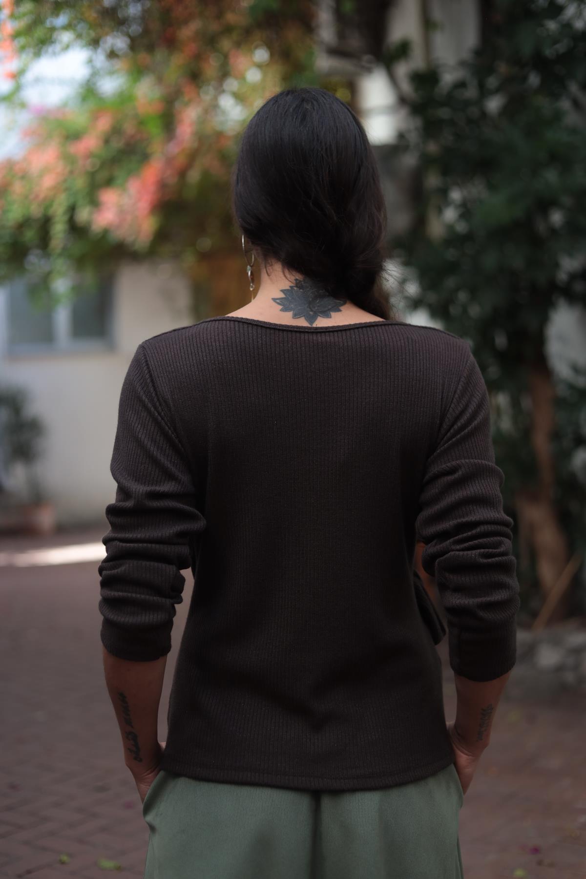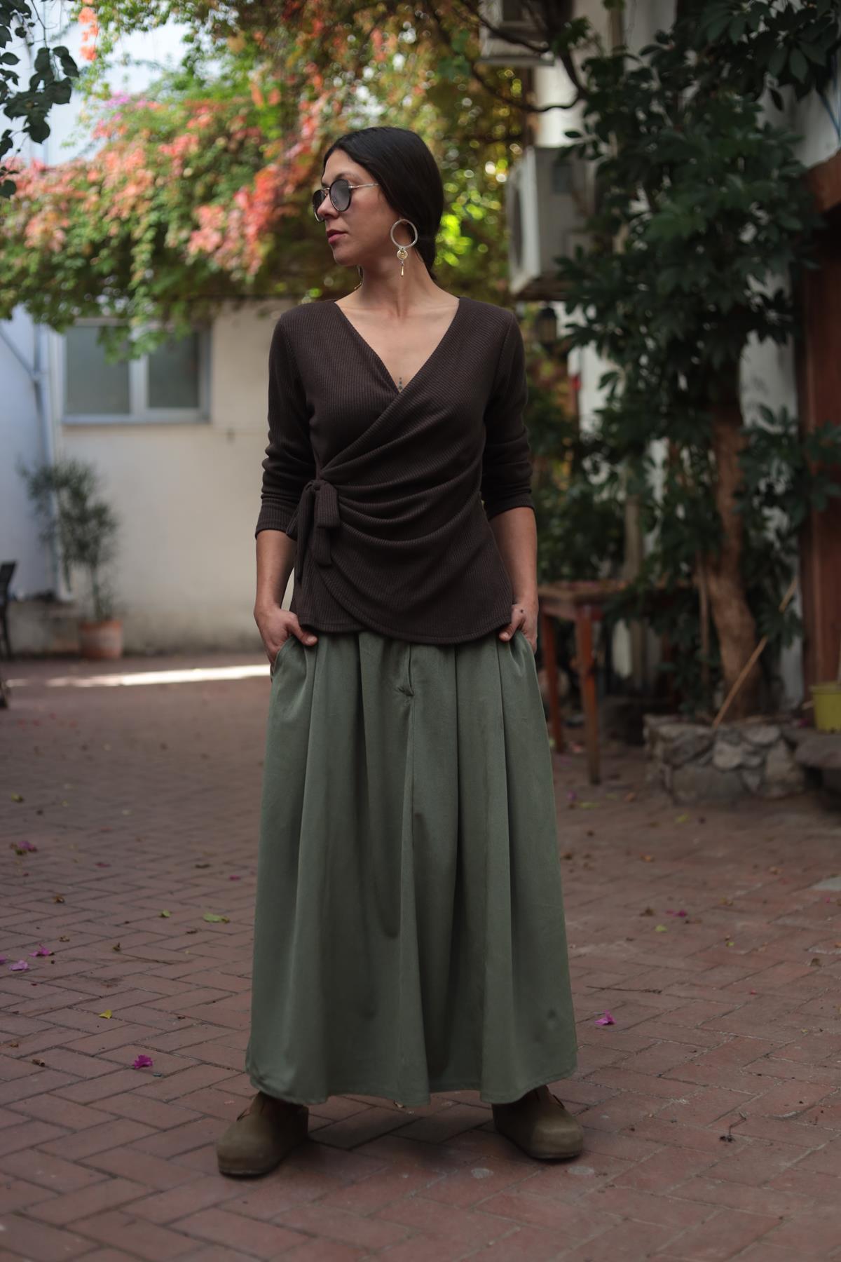 Kahverengi Düğüm Detaylı Kruvaze Bluz (KB-CMN-006-VI-KA-STD)