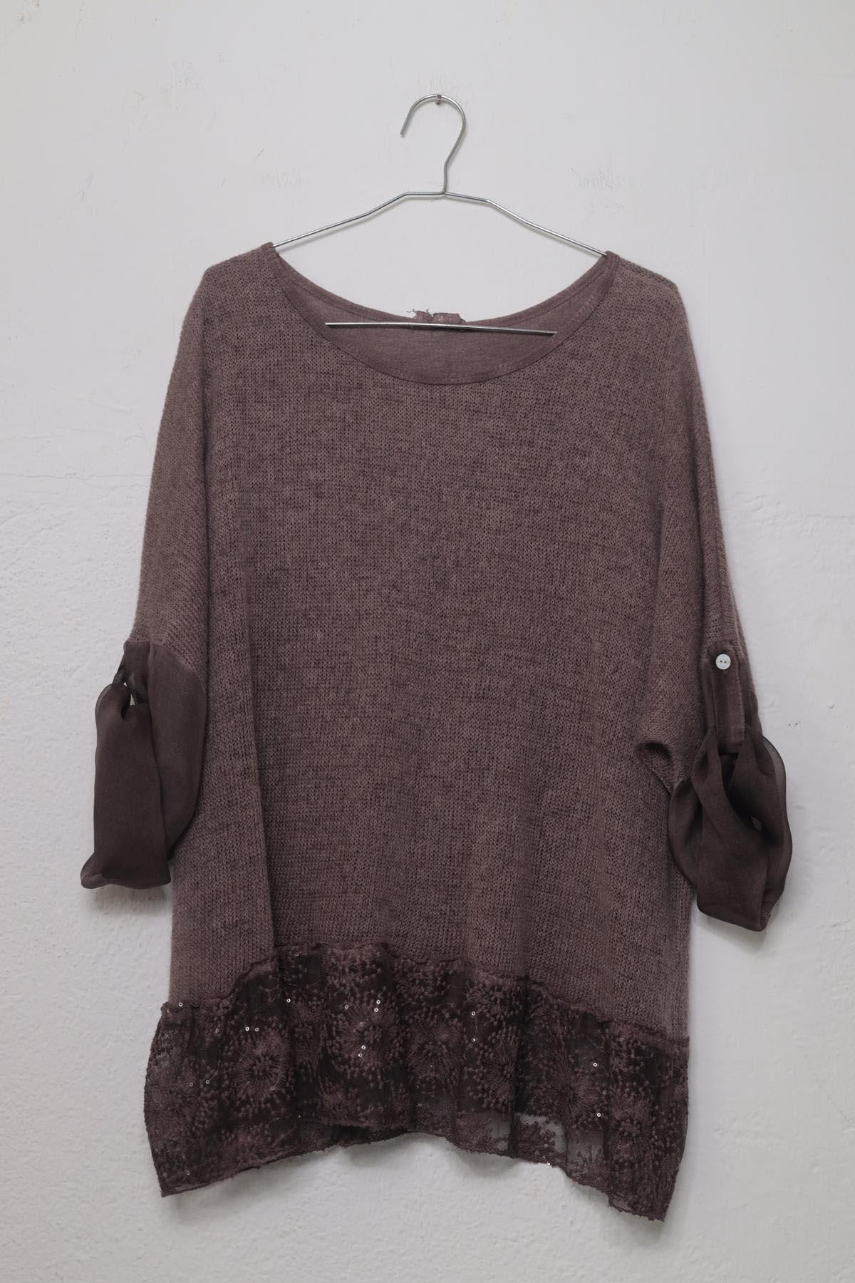 Kahverengi Eteği Payet Detay Dantelli Bluz (KB-PM-067-AK-KA-STD)
