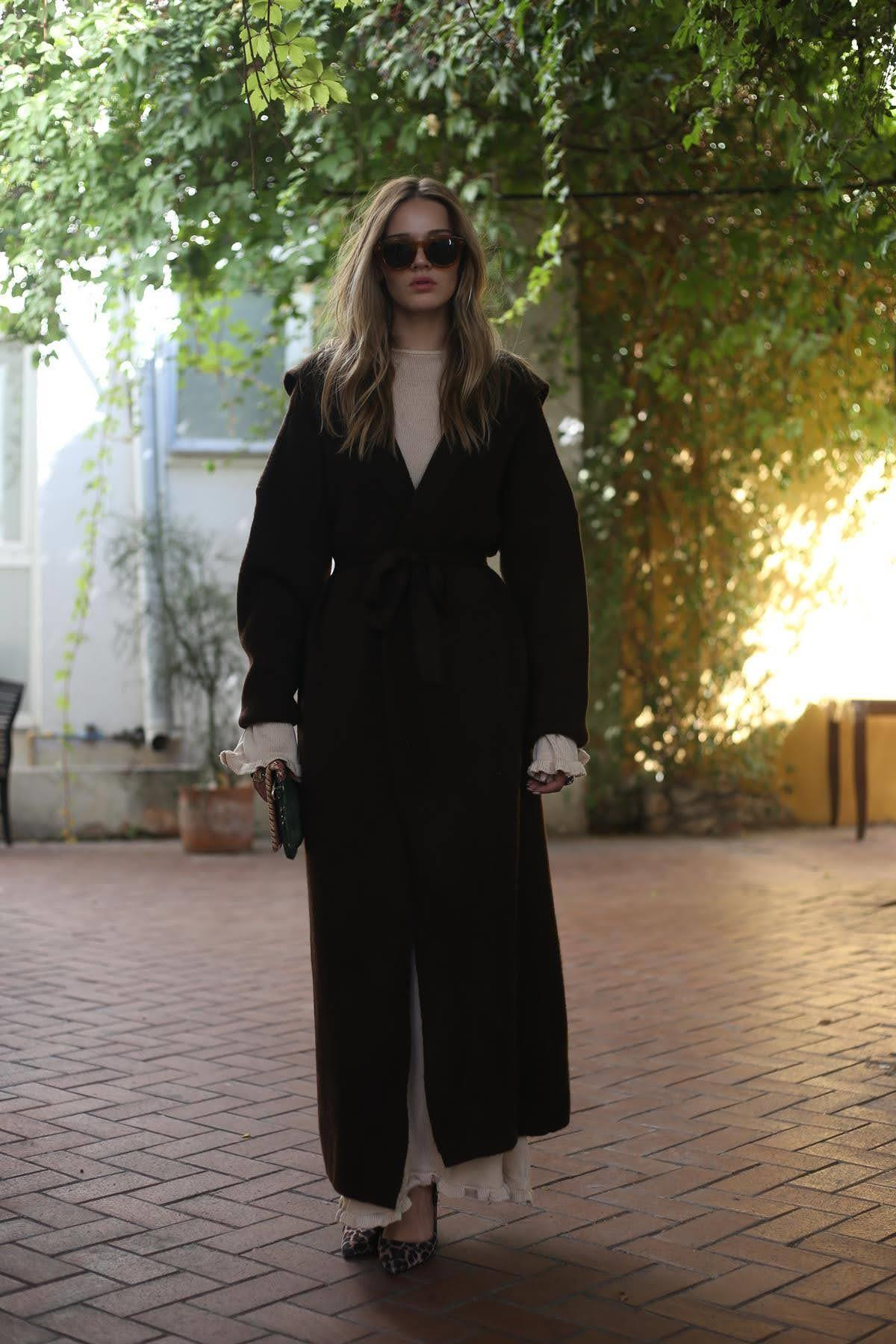 Kahverengi Kapüşonlu Uzun Triko Hırka