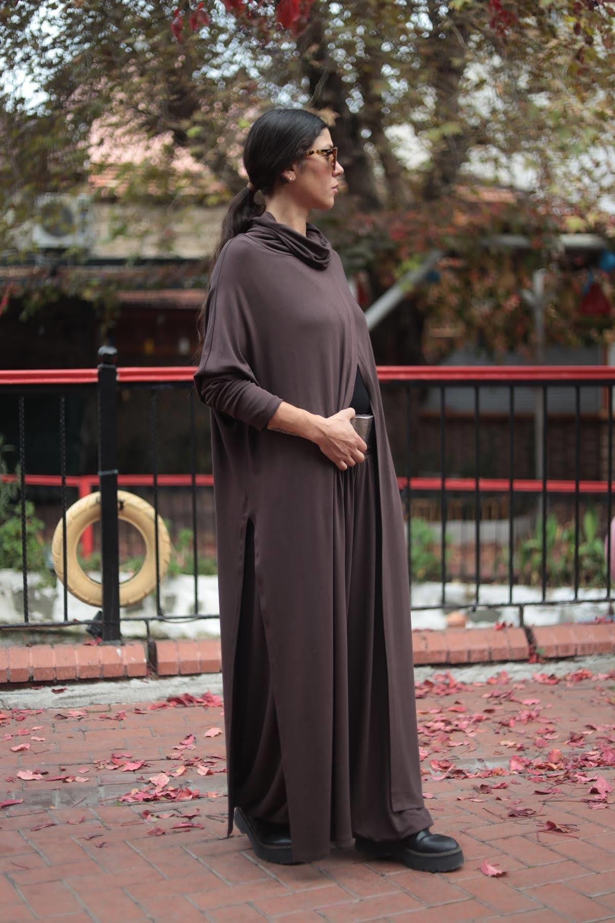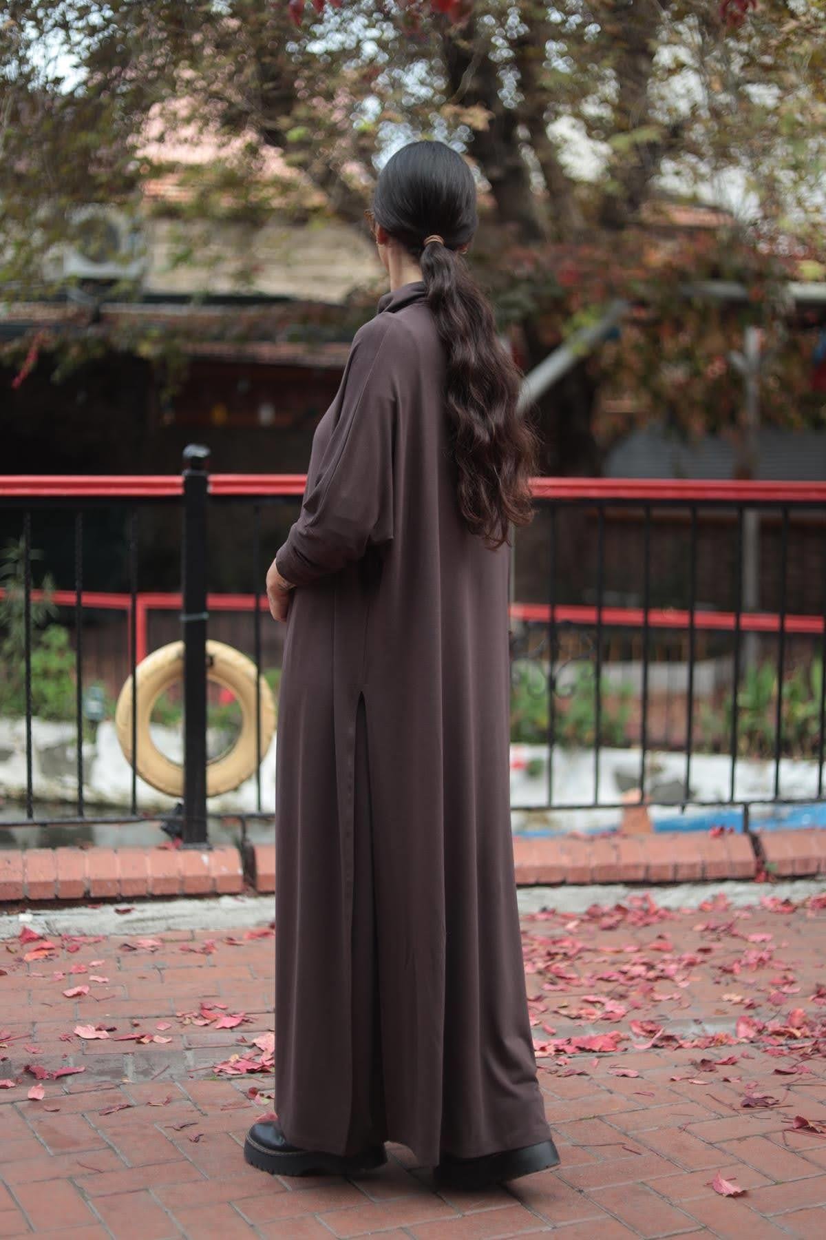 Kahverengi Önü Yırtmaçlı Boğazlı Tunik (KTNK-LAM-005-VI-KA-STD)