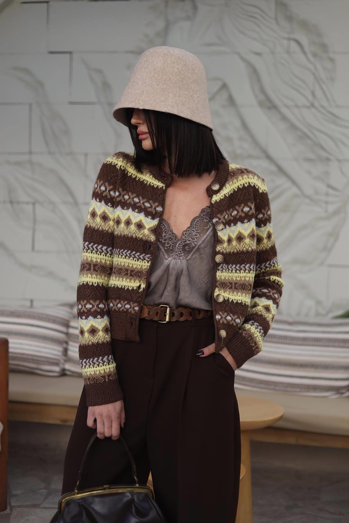 Kahverengi Otantik Desenli Triko Hırka (KH-CDC-002-AK-KA-S)