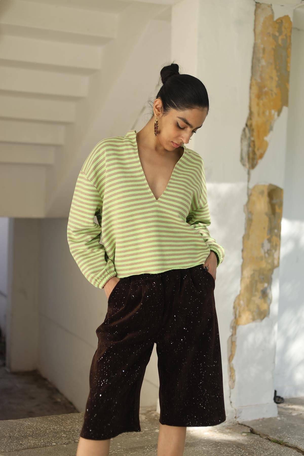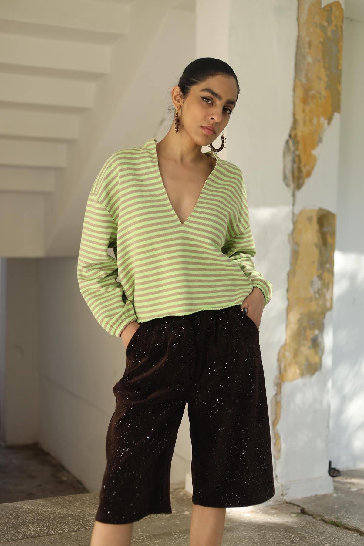 Kahverengi Simli Kadife Kapri Şort (KSRT-SIT-001-PO-KA-STD)