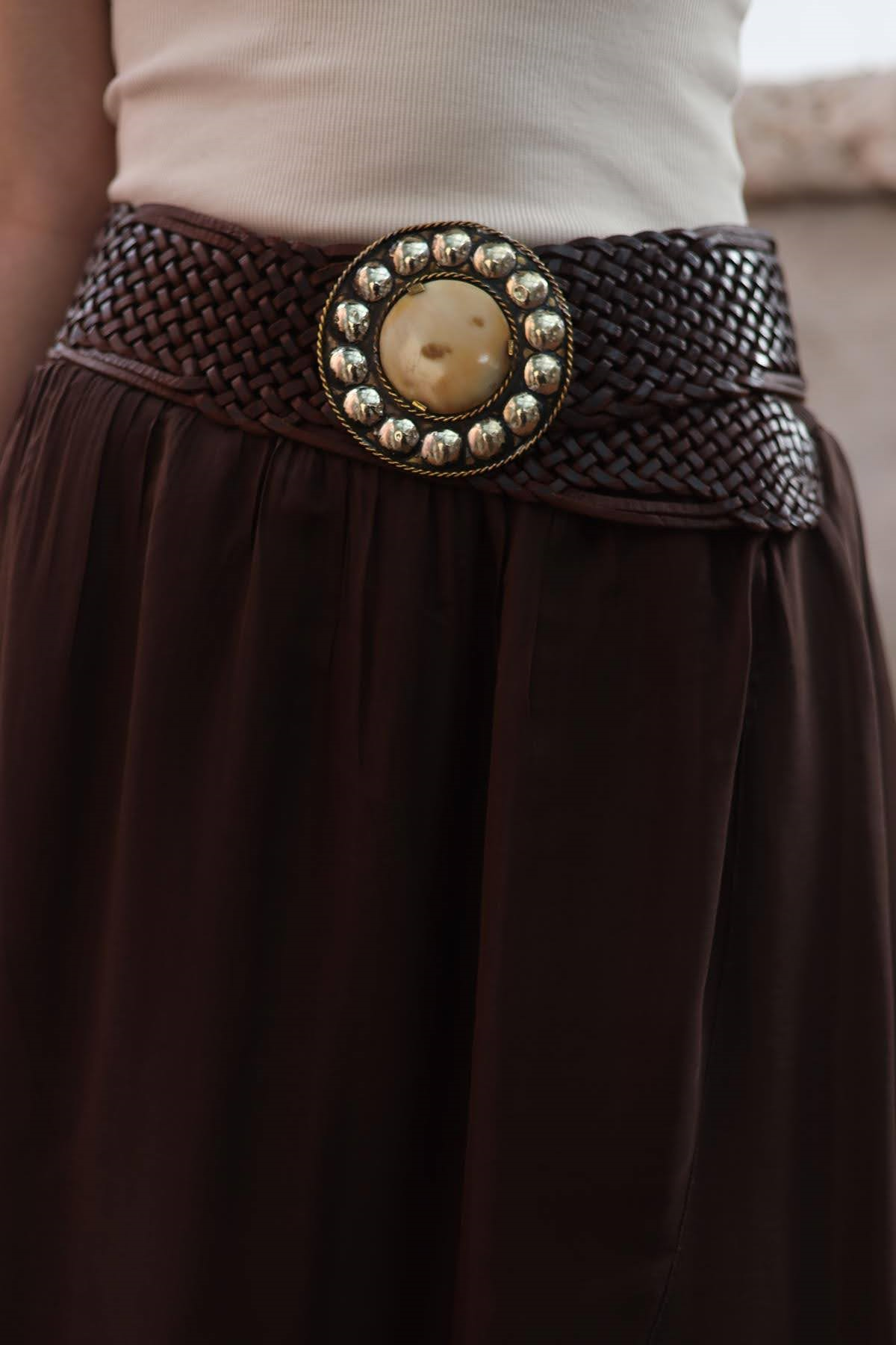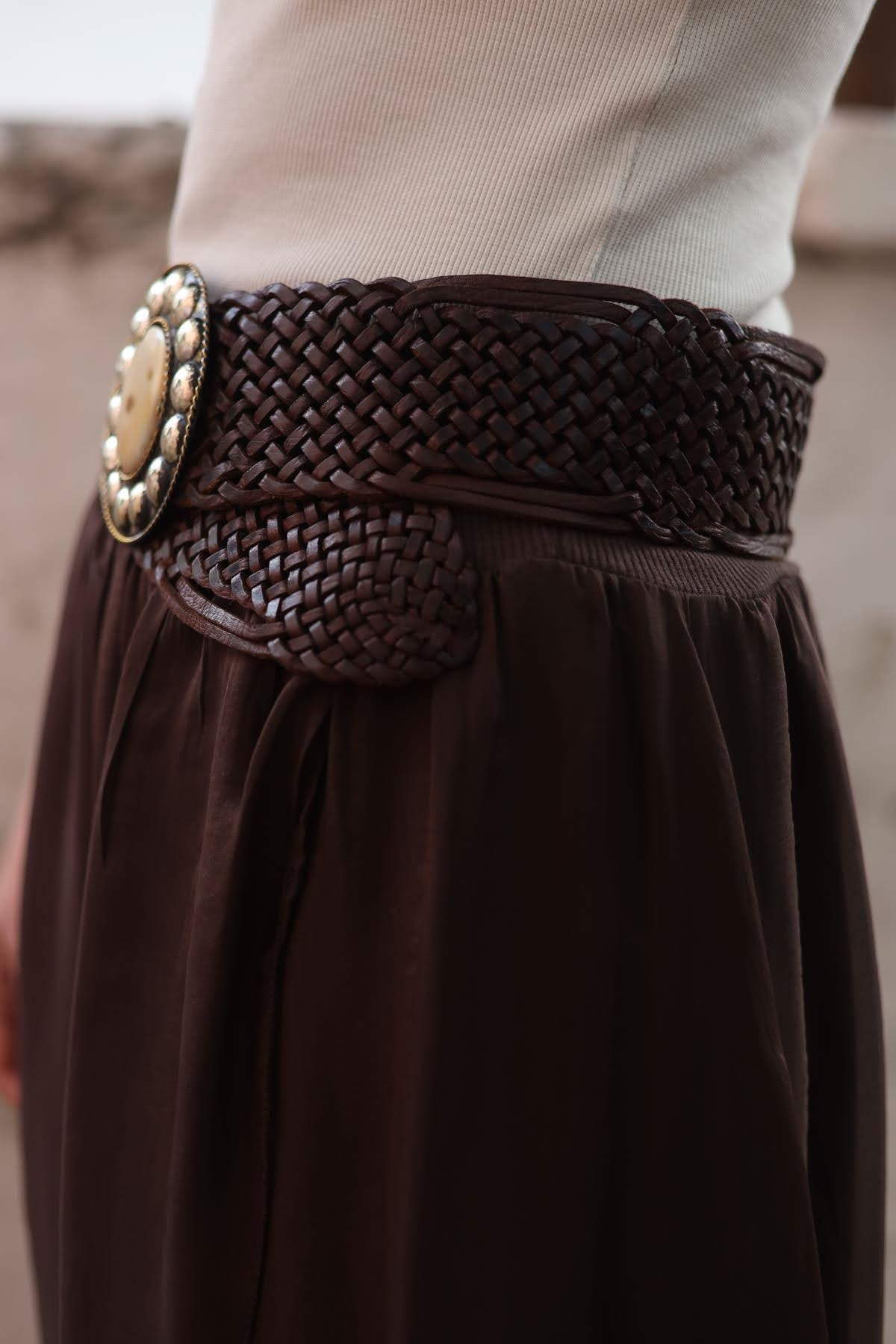 Kahverengi Taşlı Tokalı Deri Dokuma Tasarım Kemer