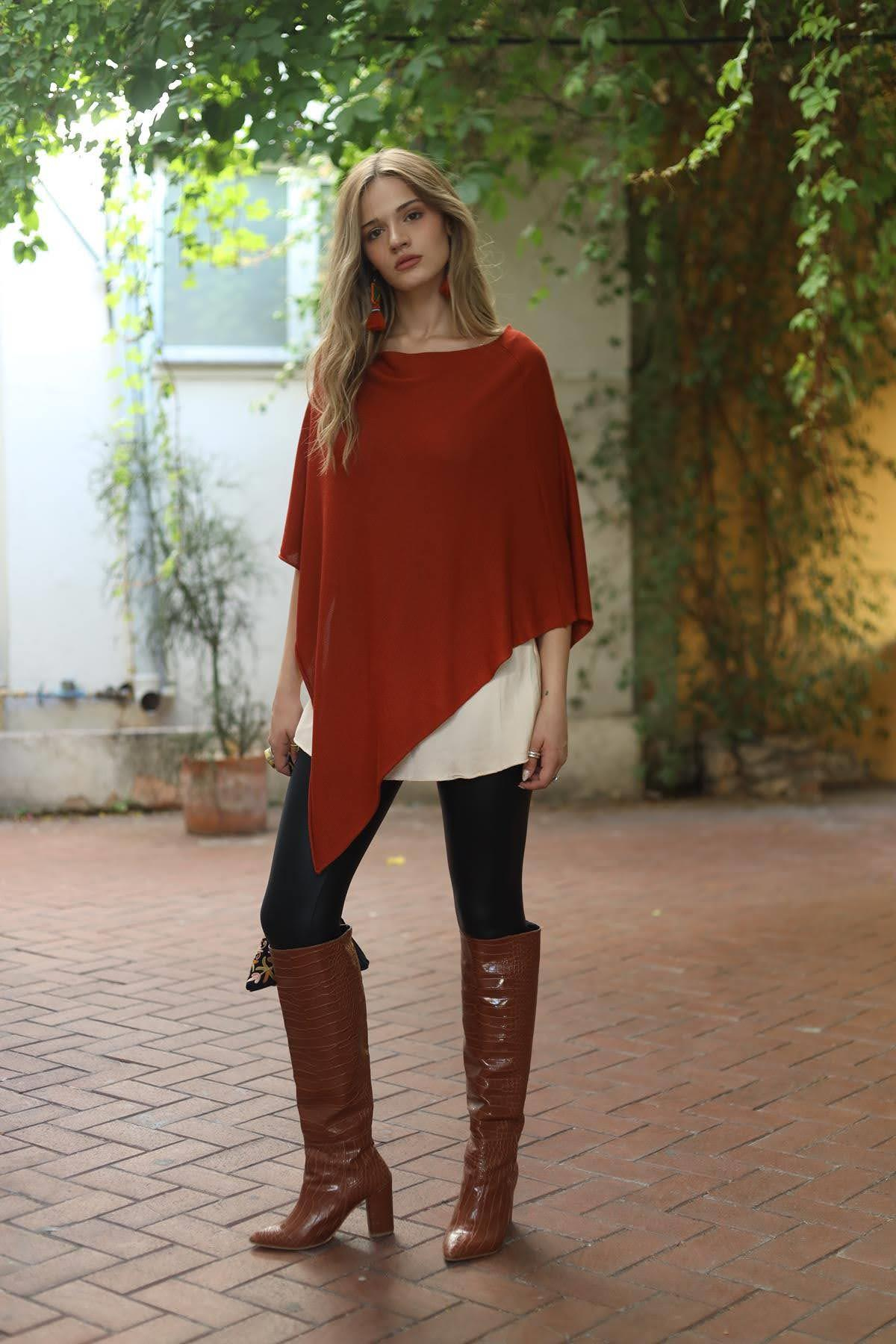 Kiremit Rengi Asimetrik Triko Panço (KB-FAL-028-VI-KK-STD)