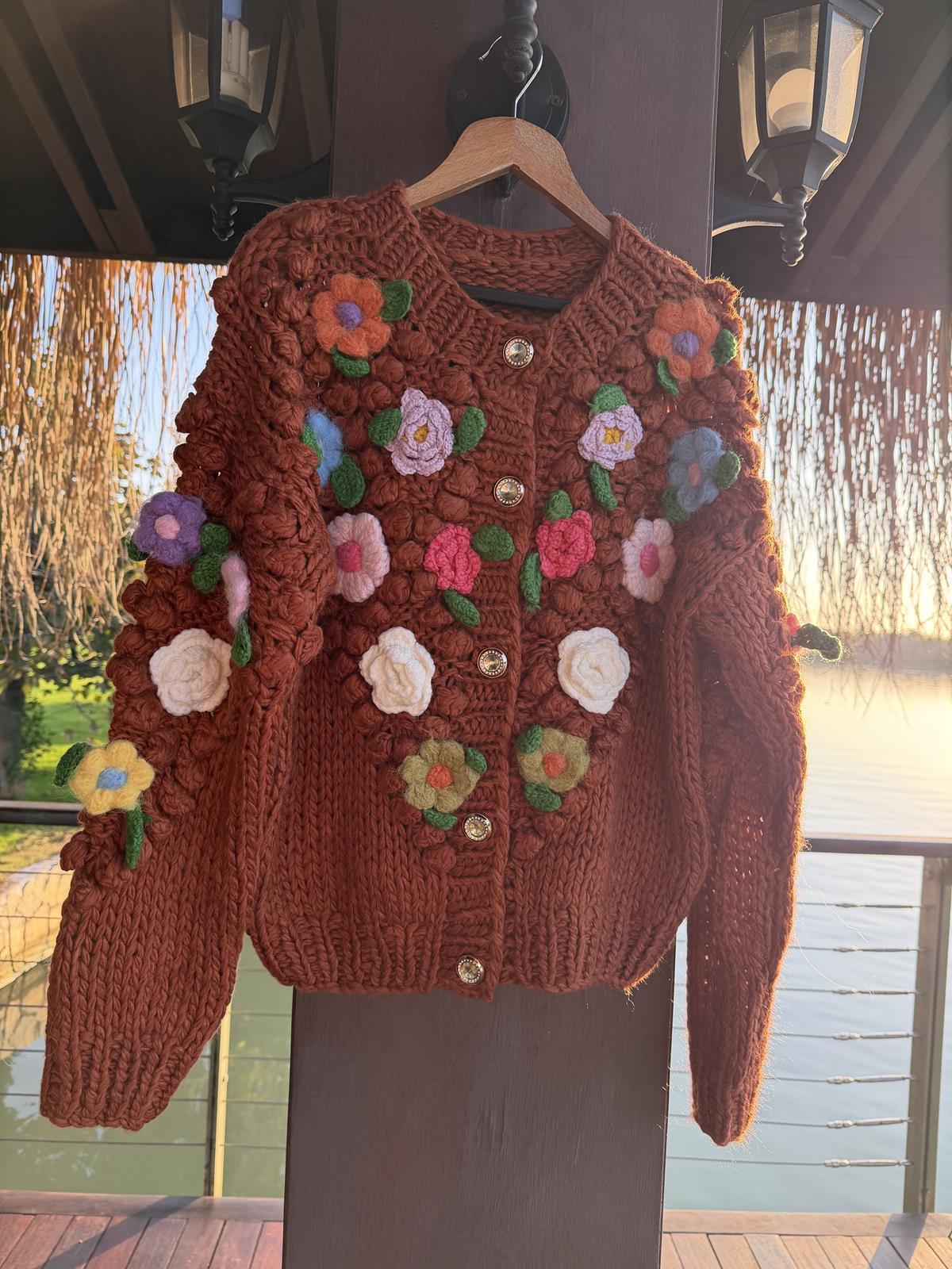 Kiremit Rengi Çiçek Detaylı Örgü Hırka (KH-AS-002-AK-KK-STD)