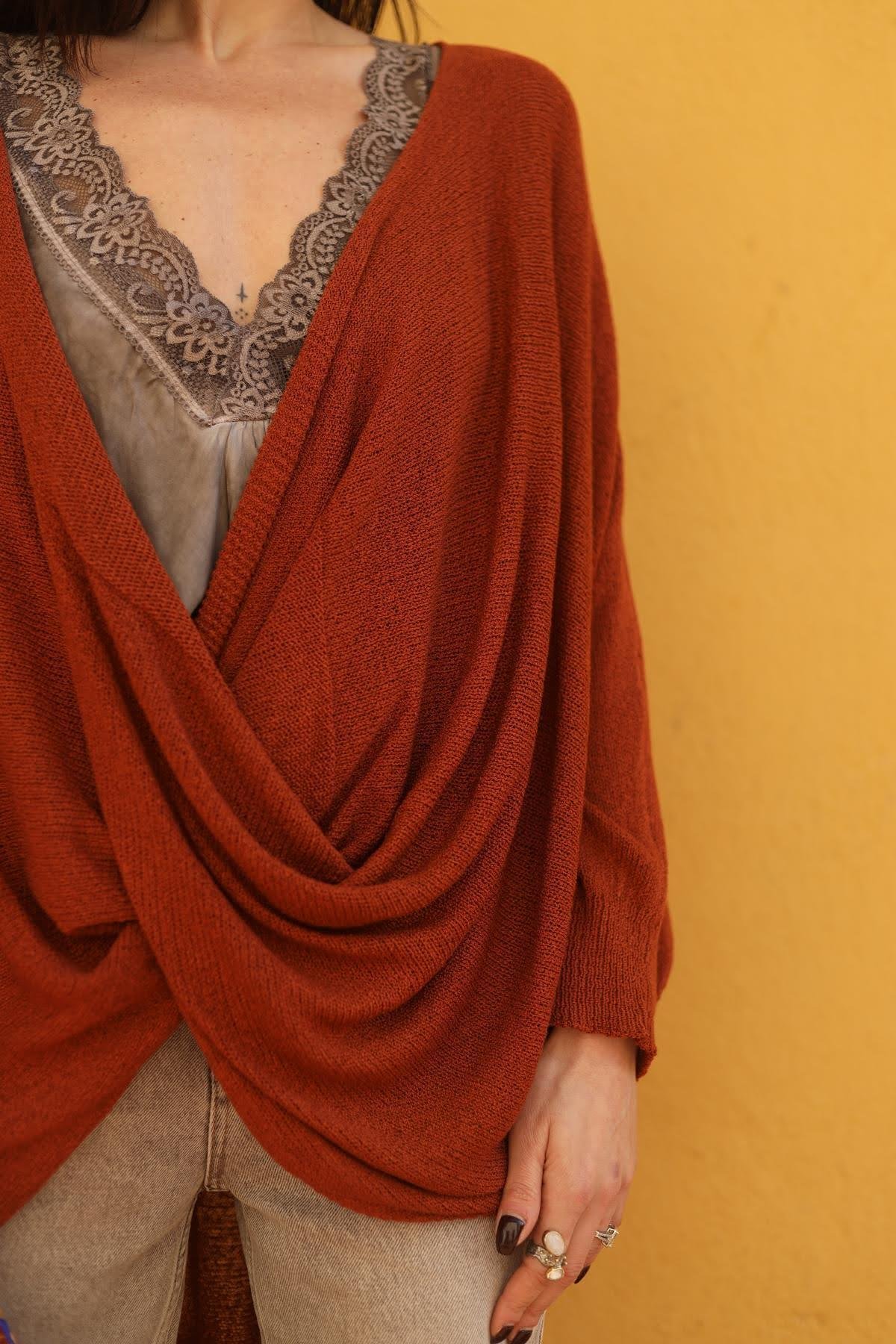 Kiremit Rengi Önü Çapraz Triko Tunik