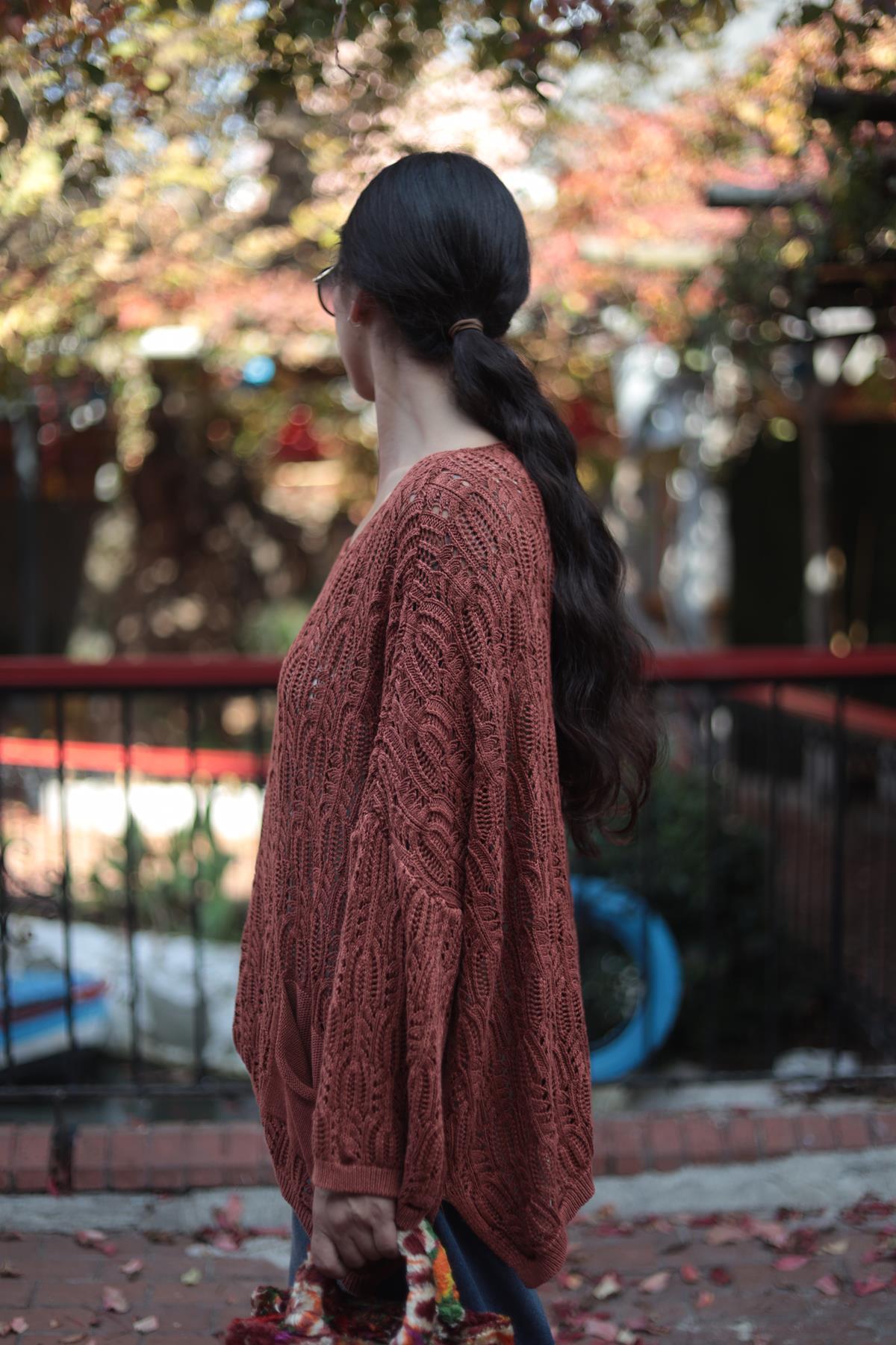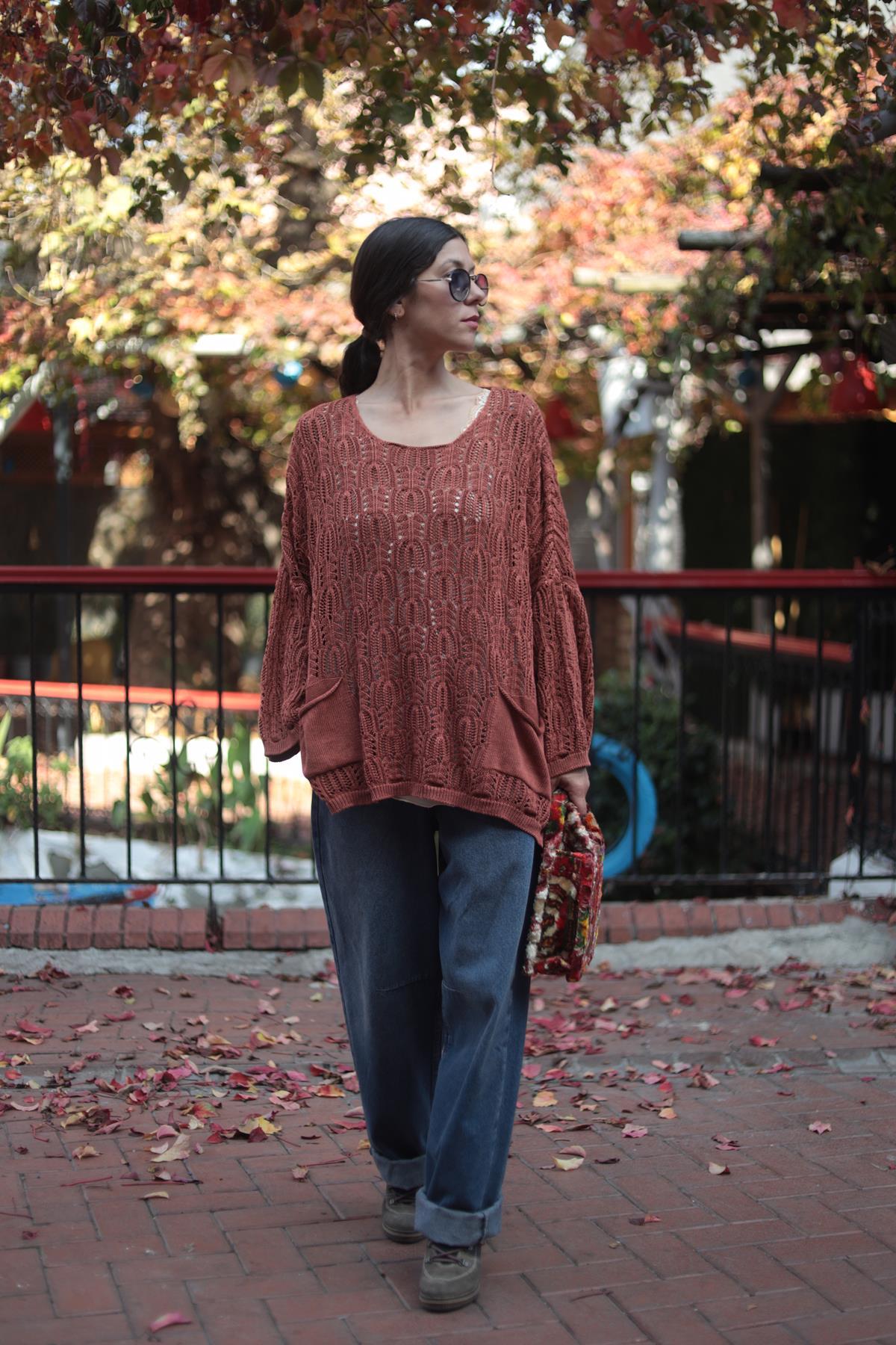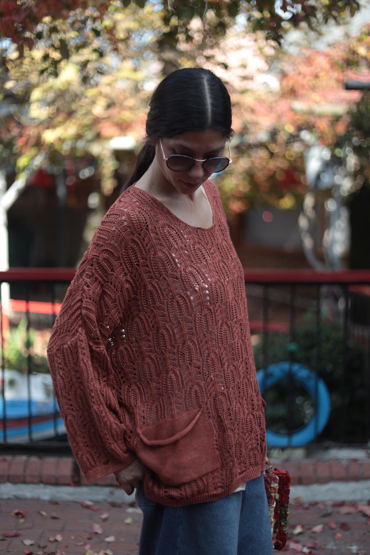 Kiremit Rengi Örgü Desenli Yıkama Triko Tunik (KTNK-LAM-020-PA-KK-STD)