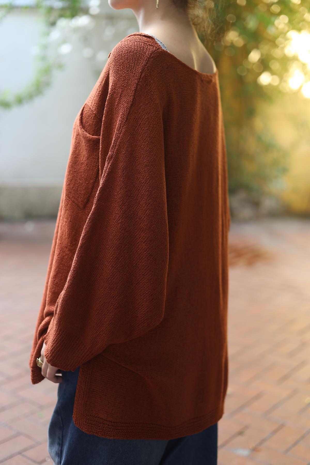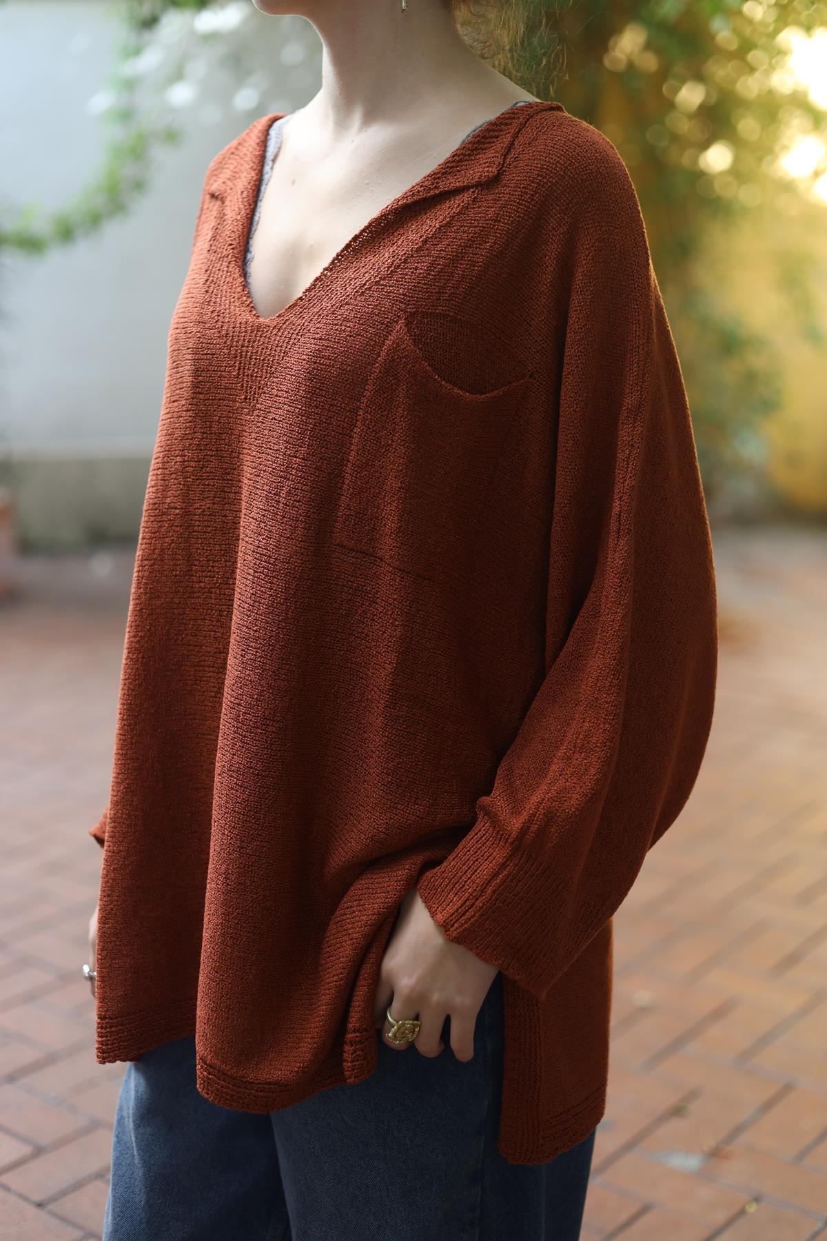 Kiremit Rengi Yaka Detaylı Yırtmaçlı Triko Tunik (KTNK-LAM-008-AK-KK-STD)