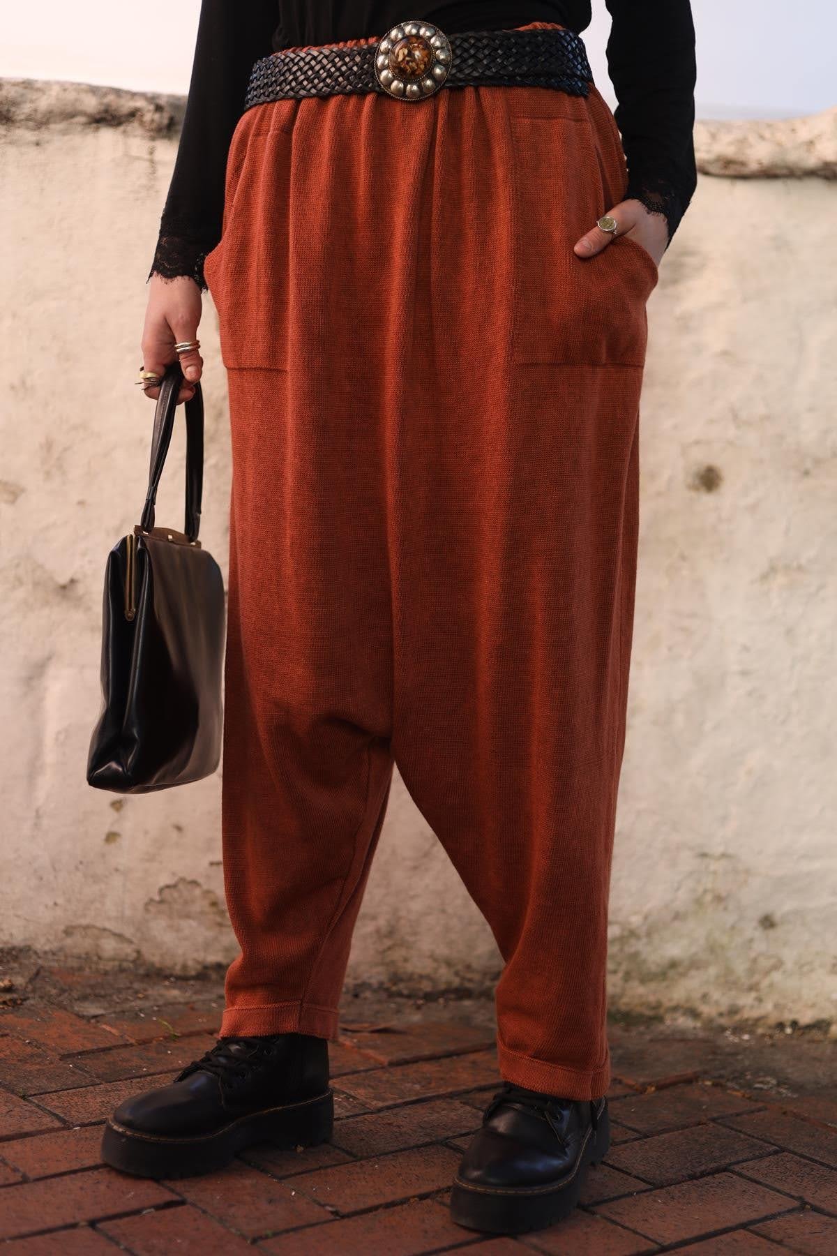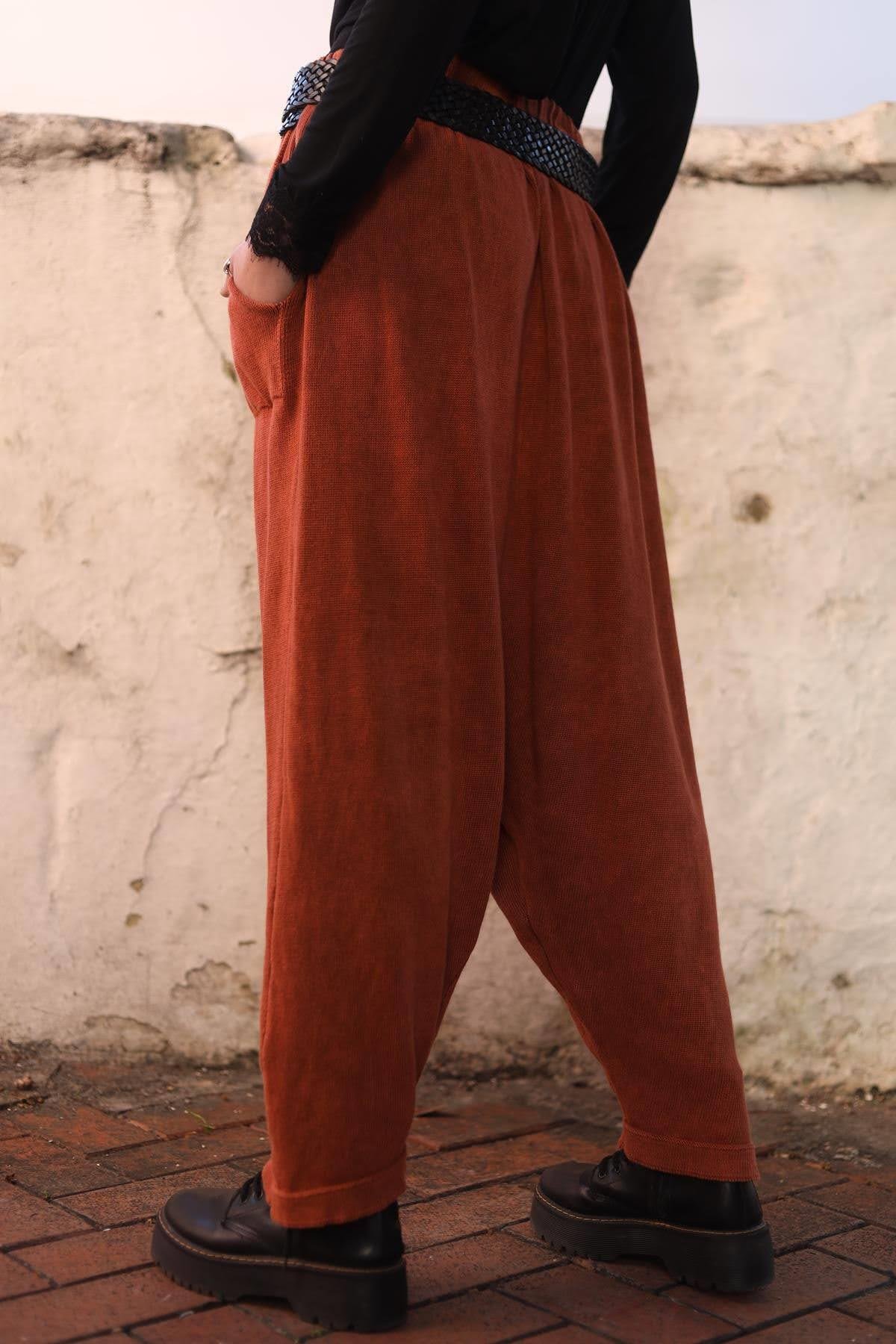 Kiremit Rengi Yıkamalı Triko Şalvar