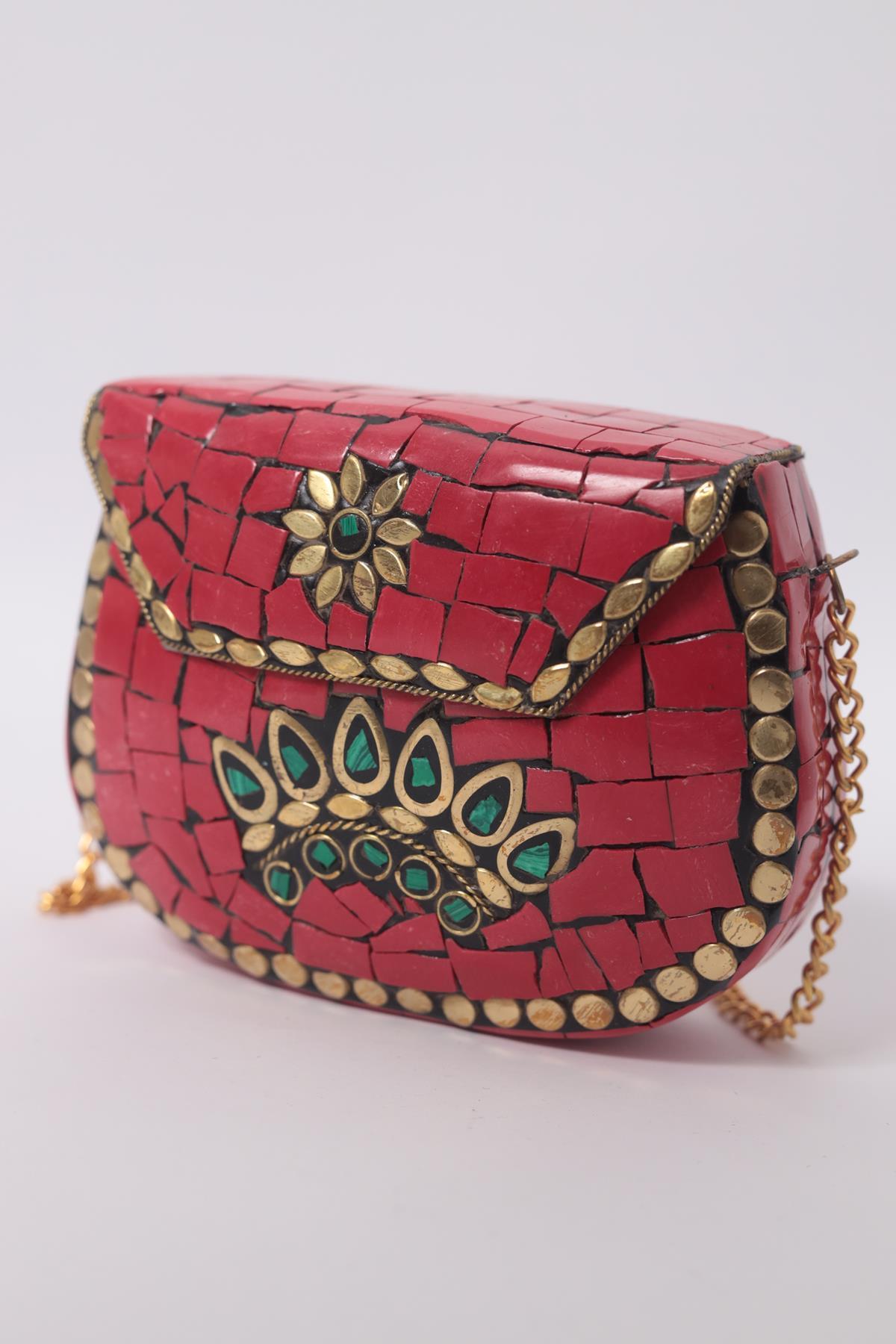 Kırmızı Taşlı Özel Tasarım Zarif Çanta (ACNT-AS-040-MTL-KI3-STD)