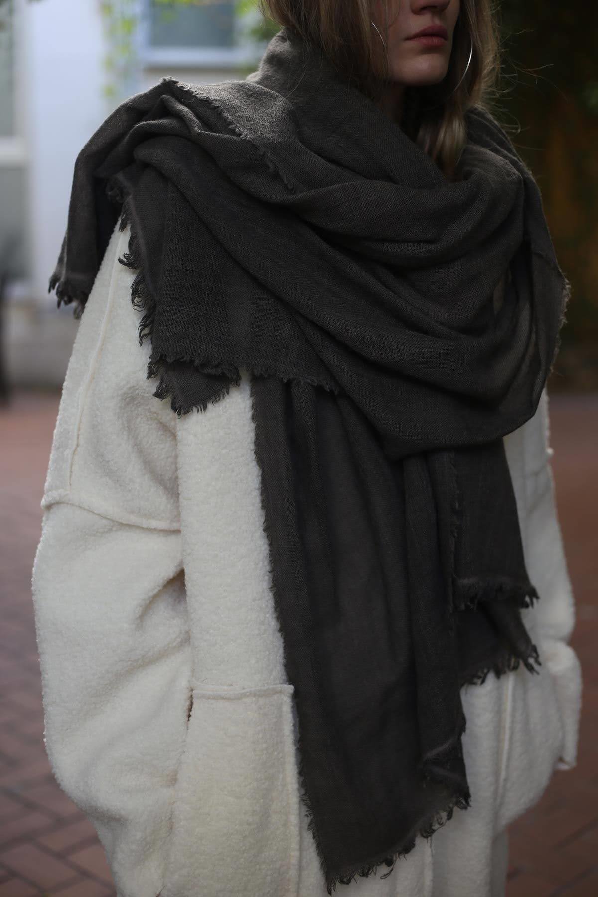 Koyu Vizon Kenarları Saçaklı Şal (ASL-FAL-001-AK-KVI-STD)
