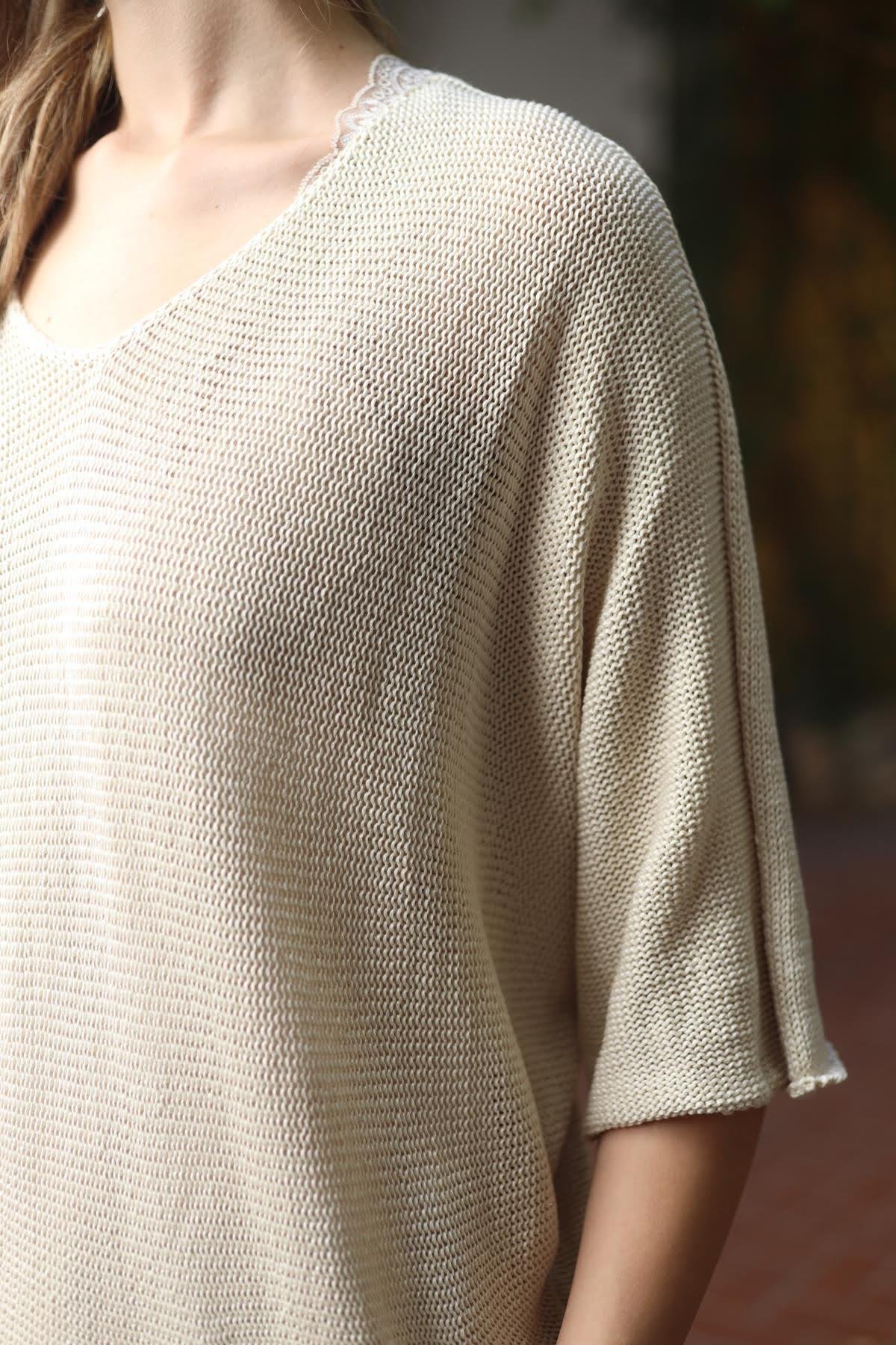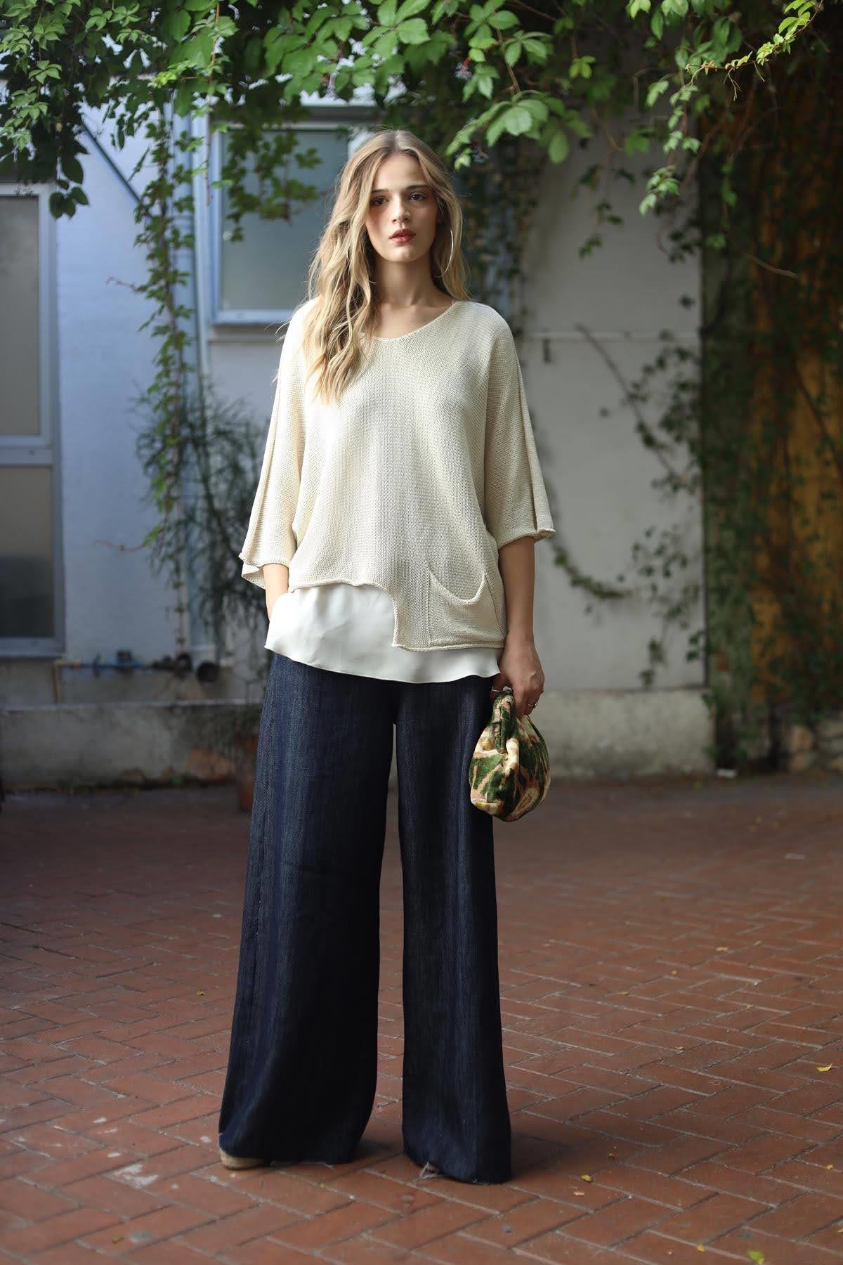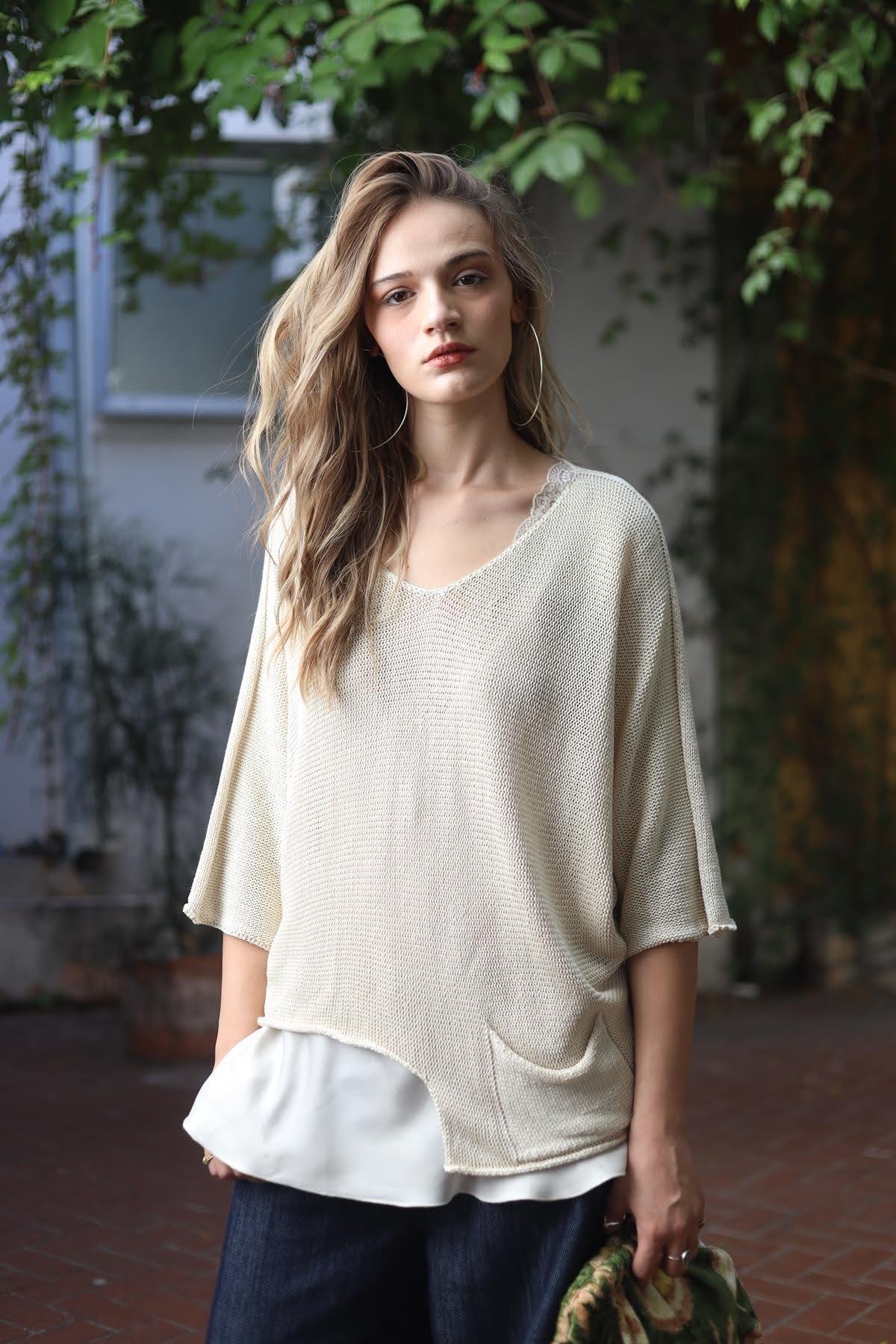 Krem Rengi Asimetrik Kesim Cepli Triko Bluz (KB-FAL-025-PA-KR-STD)