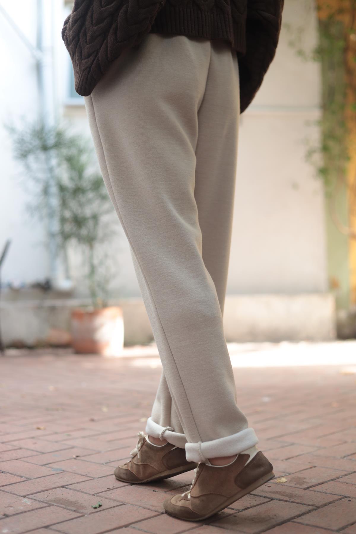 Krem Rengi Beli İpli Triko Pantolon (KP-PM-058-PO-KR-STD)