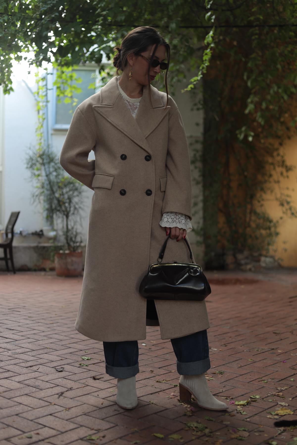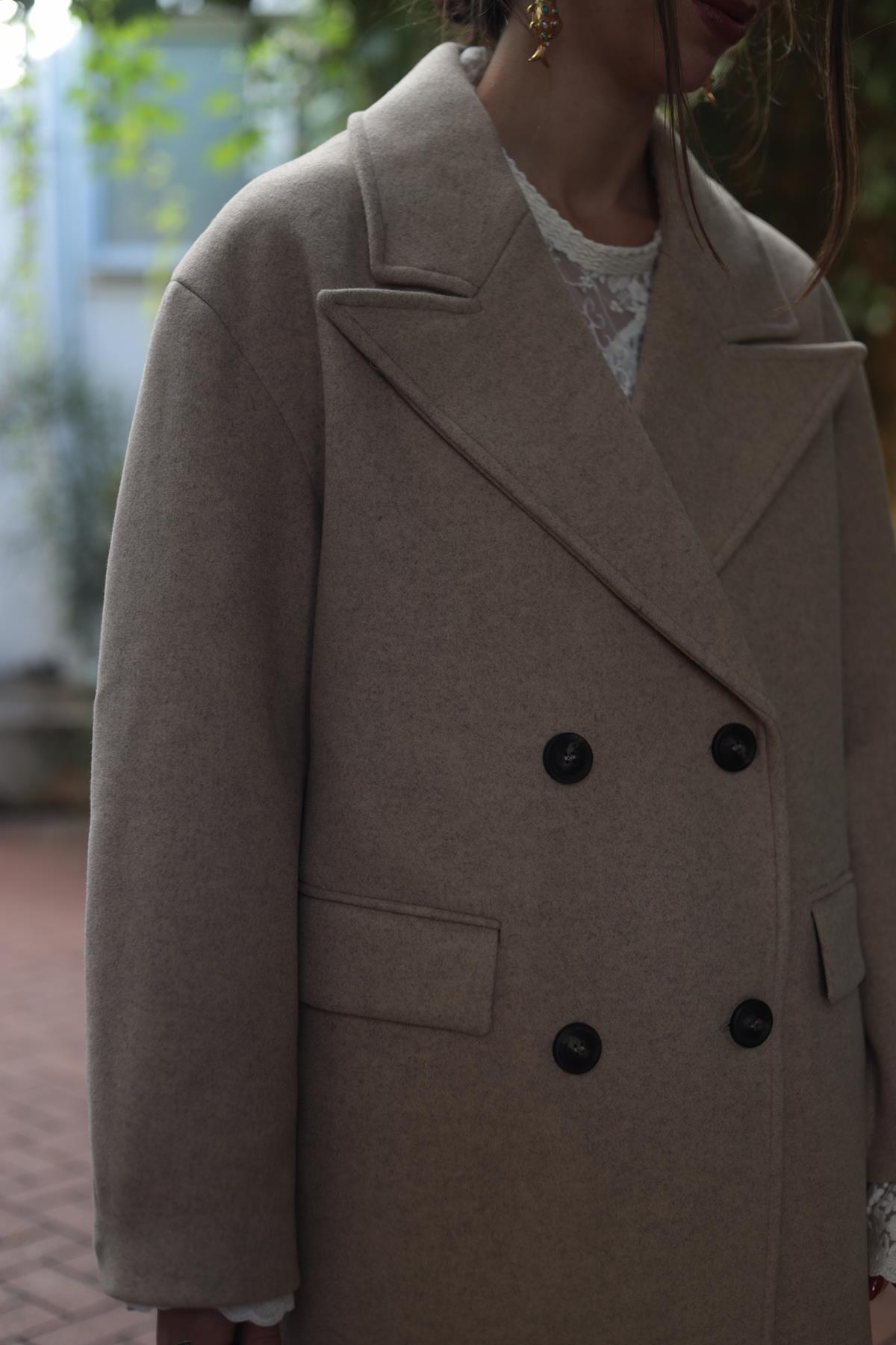 Krem Rengi Düğmeli Keçe Kaban (KKBN-CMN-003-PO-KR-34)