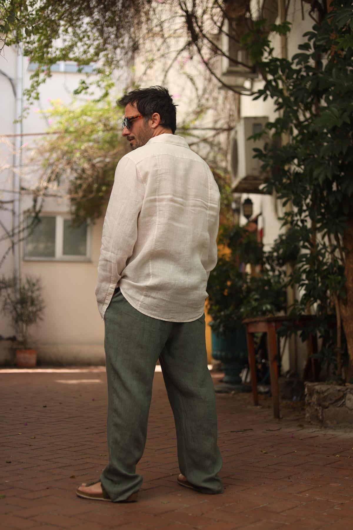 Krem Rengi Keten Klasik Erkek Gömlek (EG-SIT-001-KTN-KR-STD)