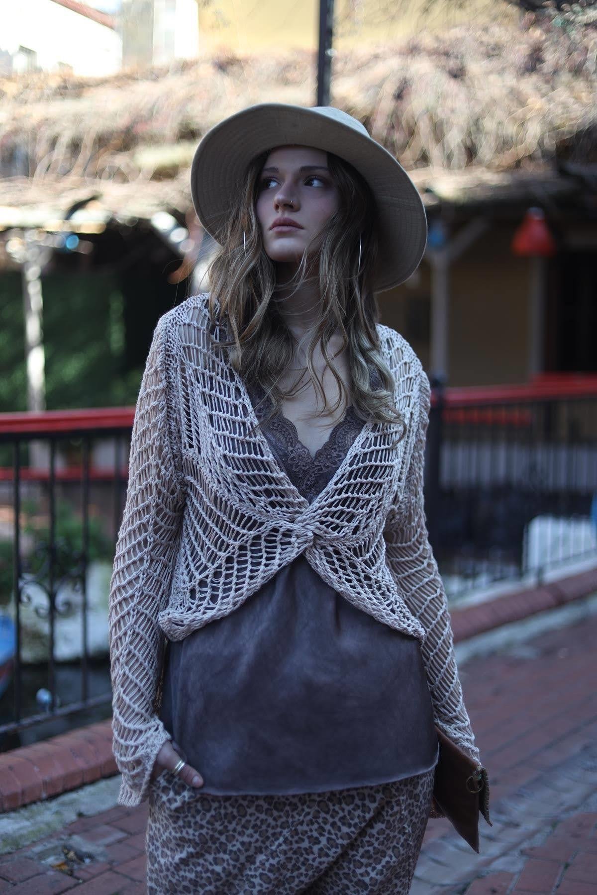 Krem Rengi Önü Çapraz File Triko Bluz (KB-SIT-020-VI-KR-STD)