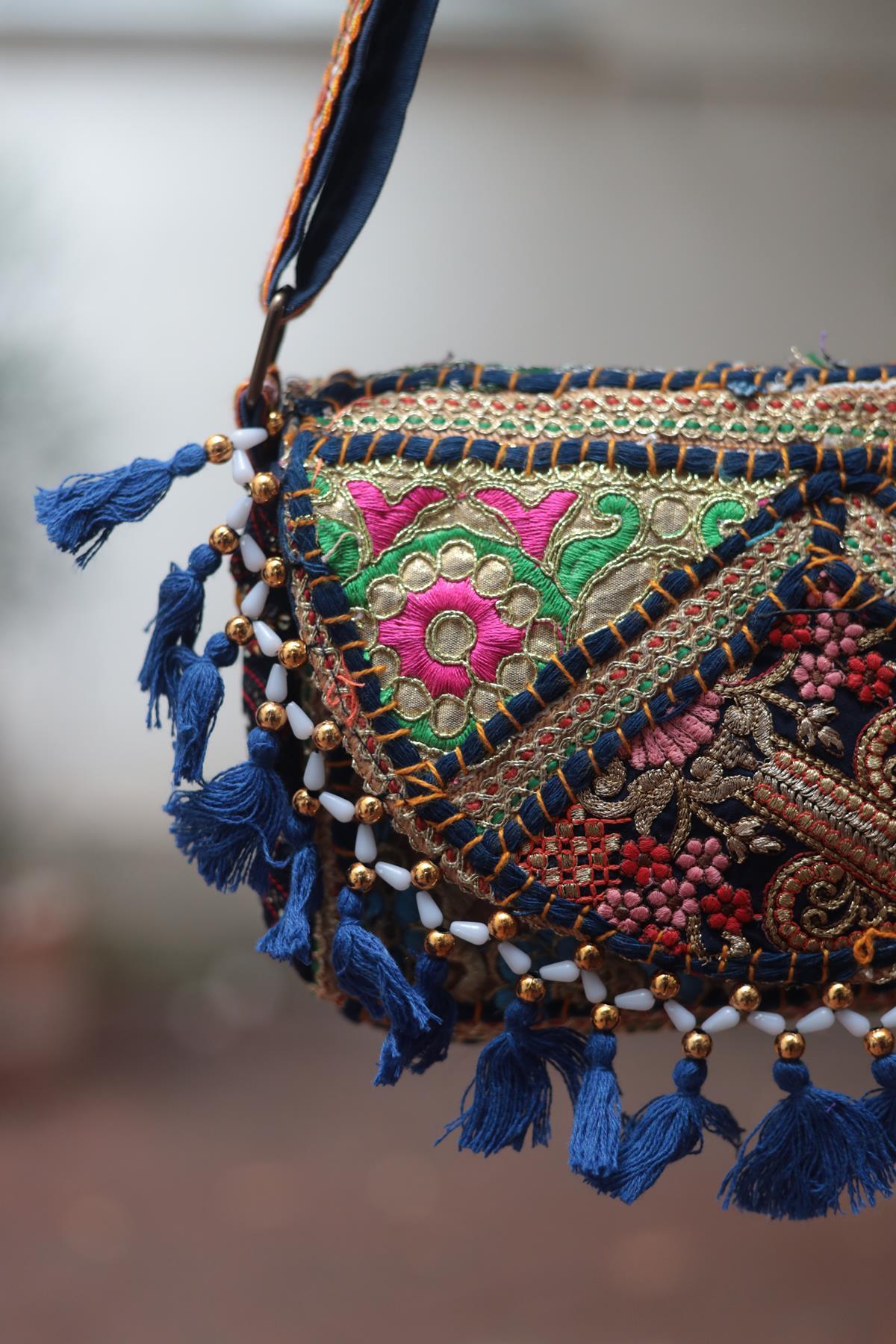 Lacivert Boncuk İşlemeli Zarf Çanta (ACNT-MOT-003-PA-LA-STD)