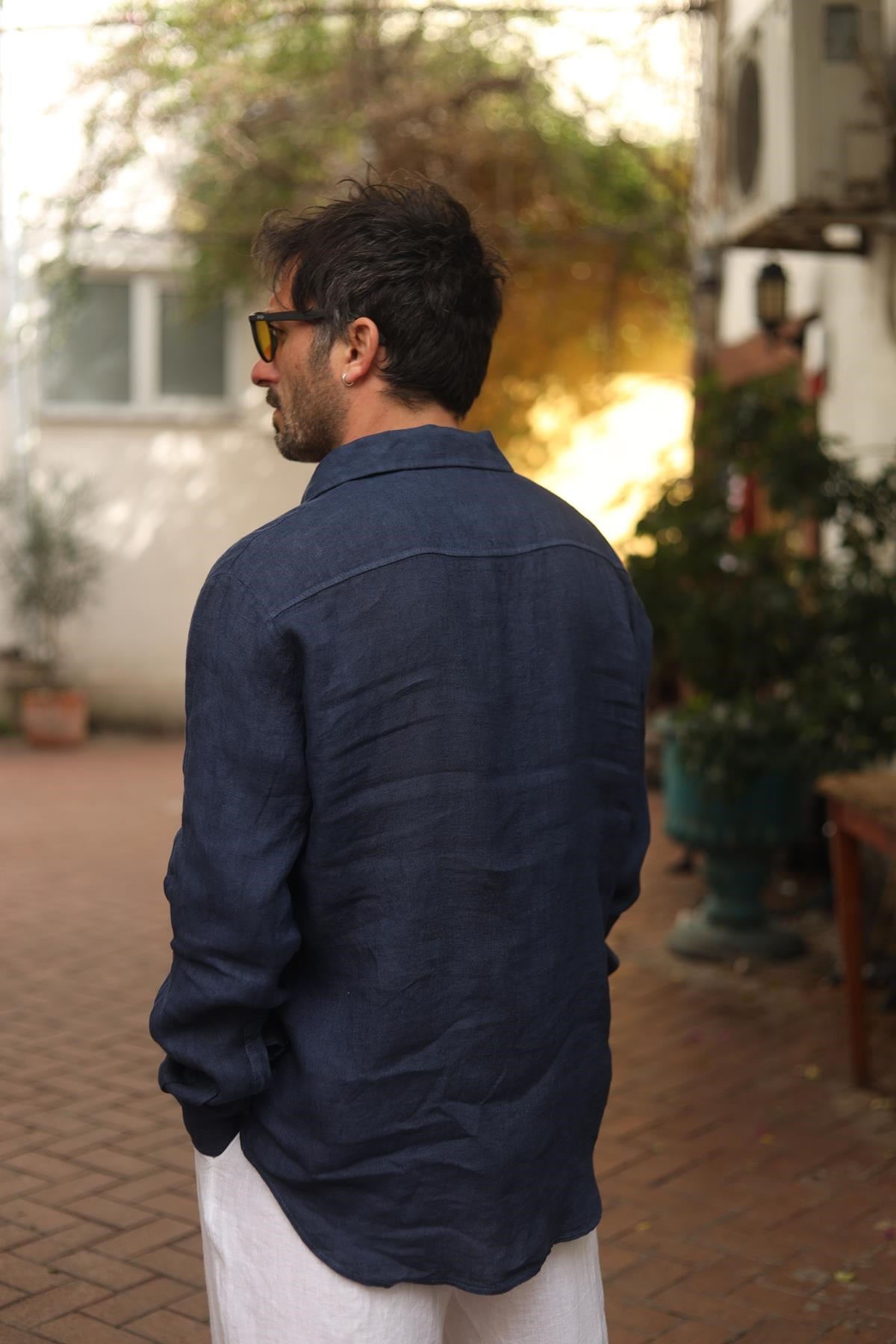 Lacivert Cepli Erkek Keten Gömlek (EG-SIT-002-KTN-LA-STD)