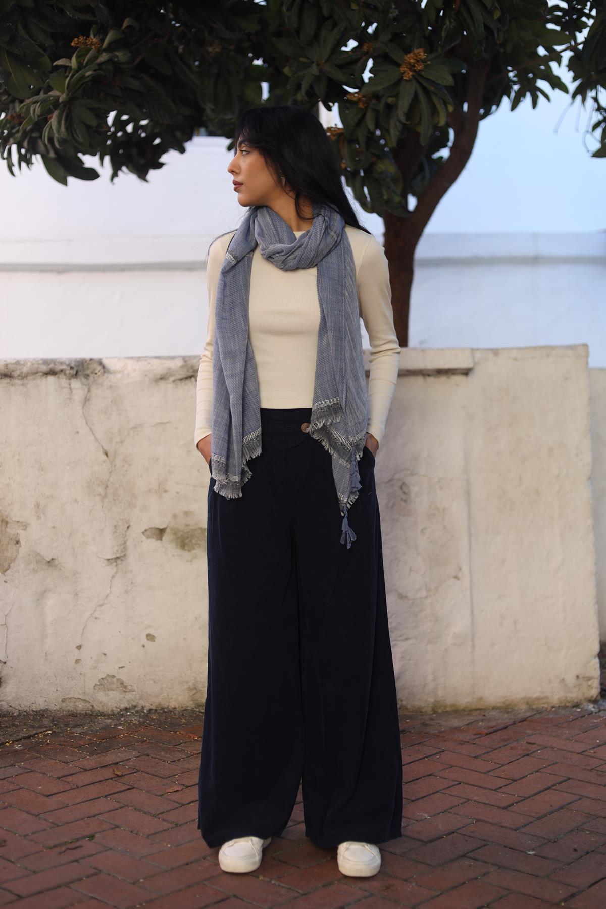 Lacivert Düğme Detaylı Kadife Pantolon (KP-FAL-040-PA-LA-STD)