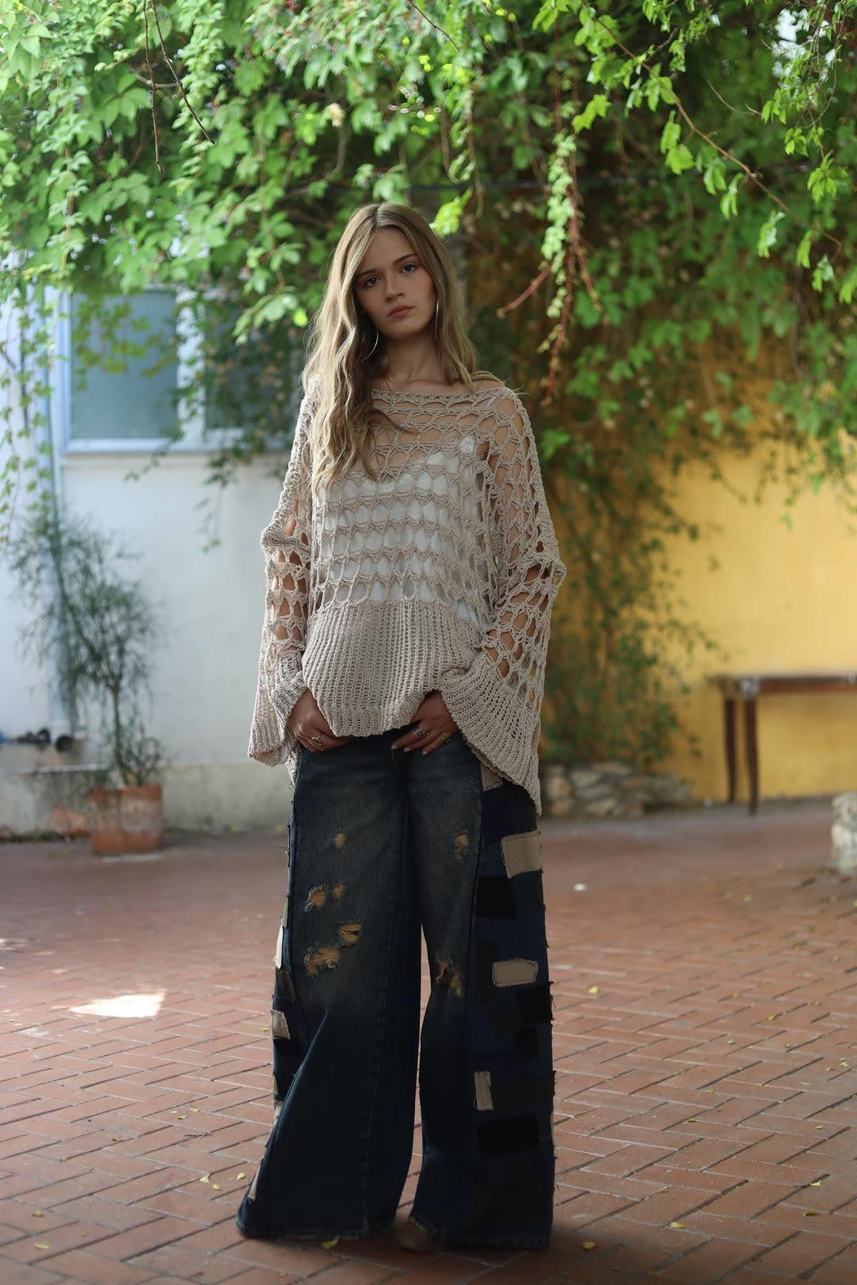 Lacivert Parça Detaylı İspanyol Paça Kot Pantolon