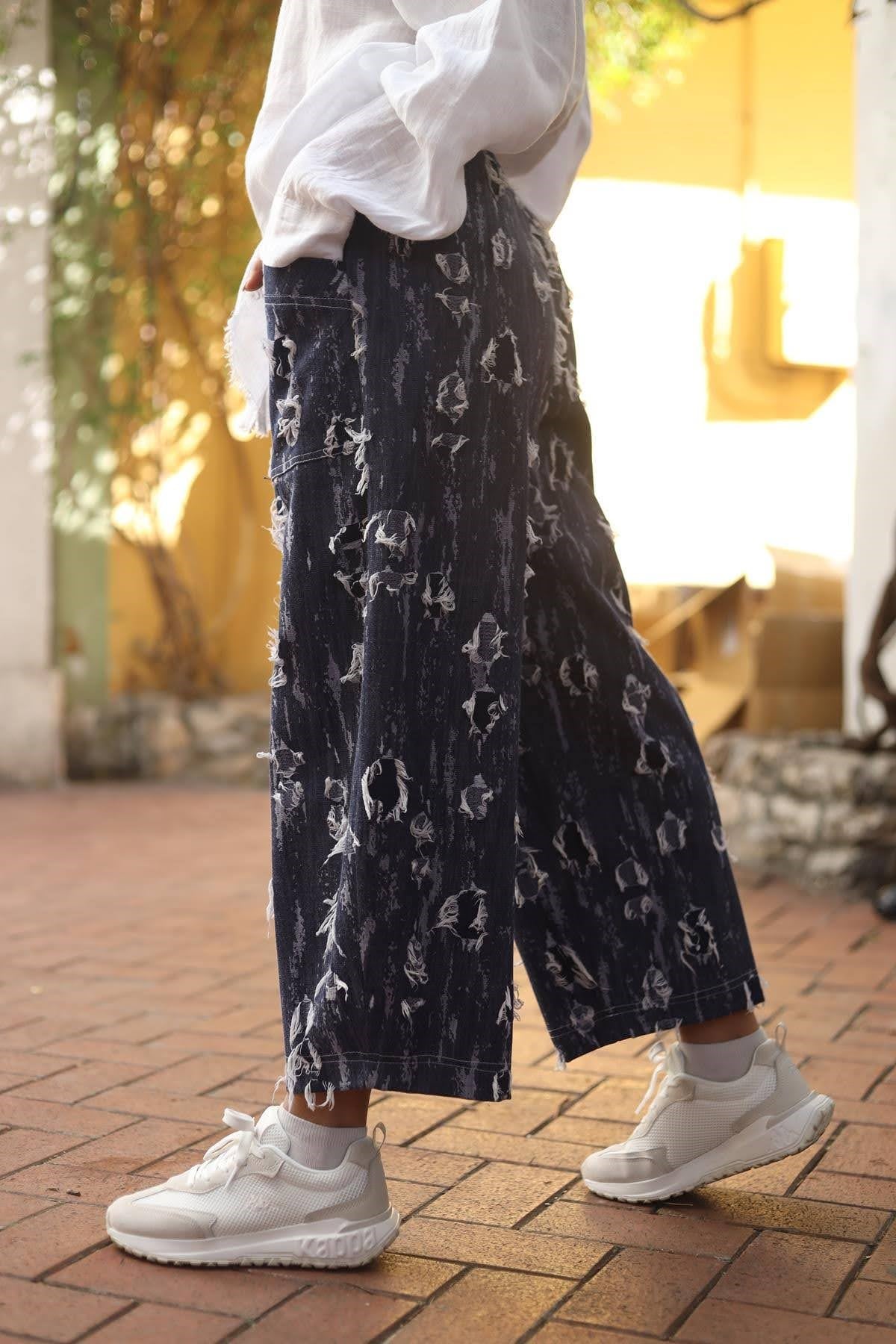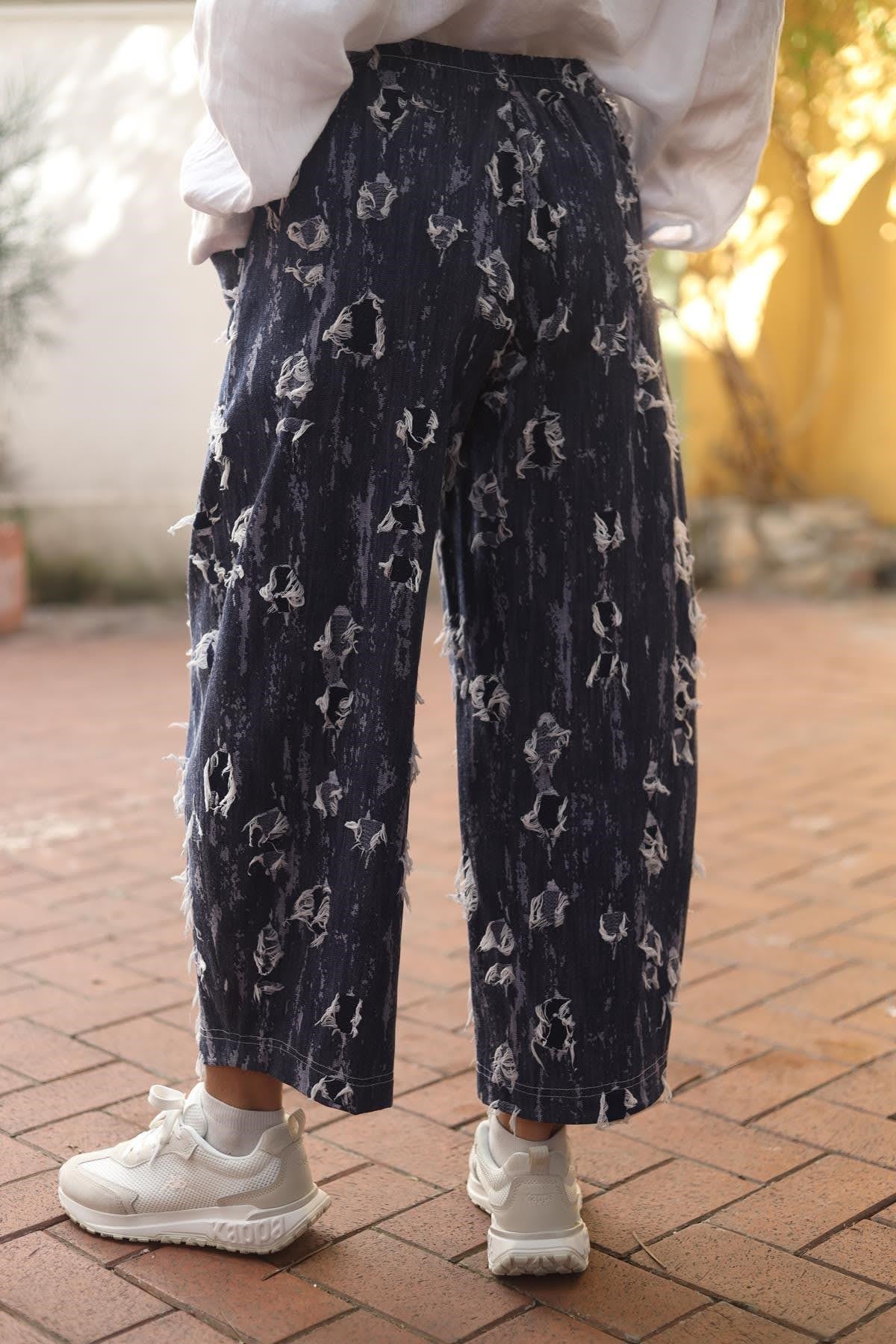 Lacivert Yırtık Görünümlü Kot Pantolon