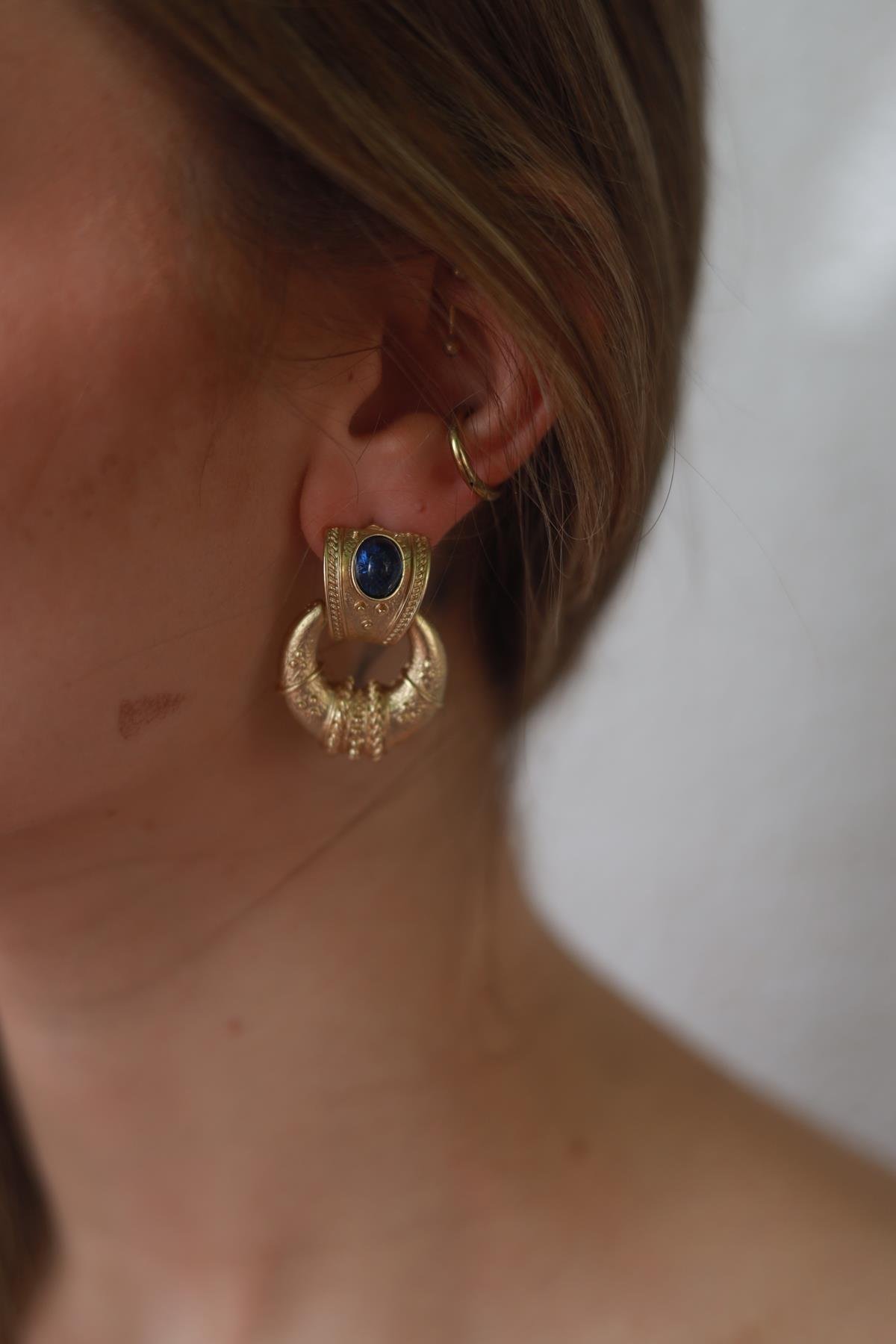 Mavi Taş Detaylı Gold Rengi Küpe (TA-KU-1145)