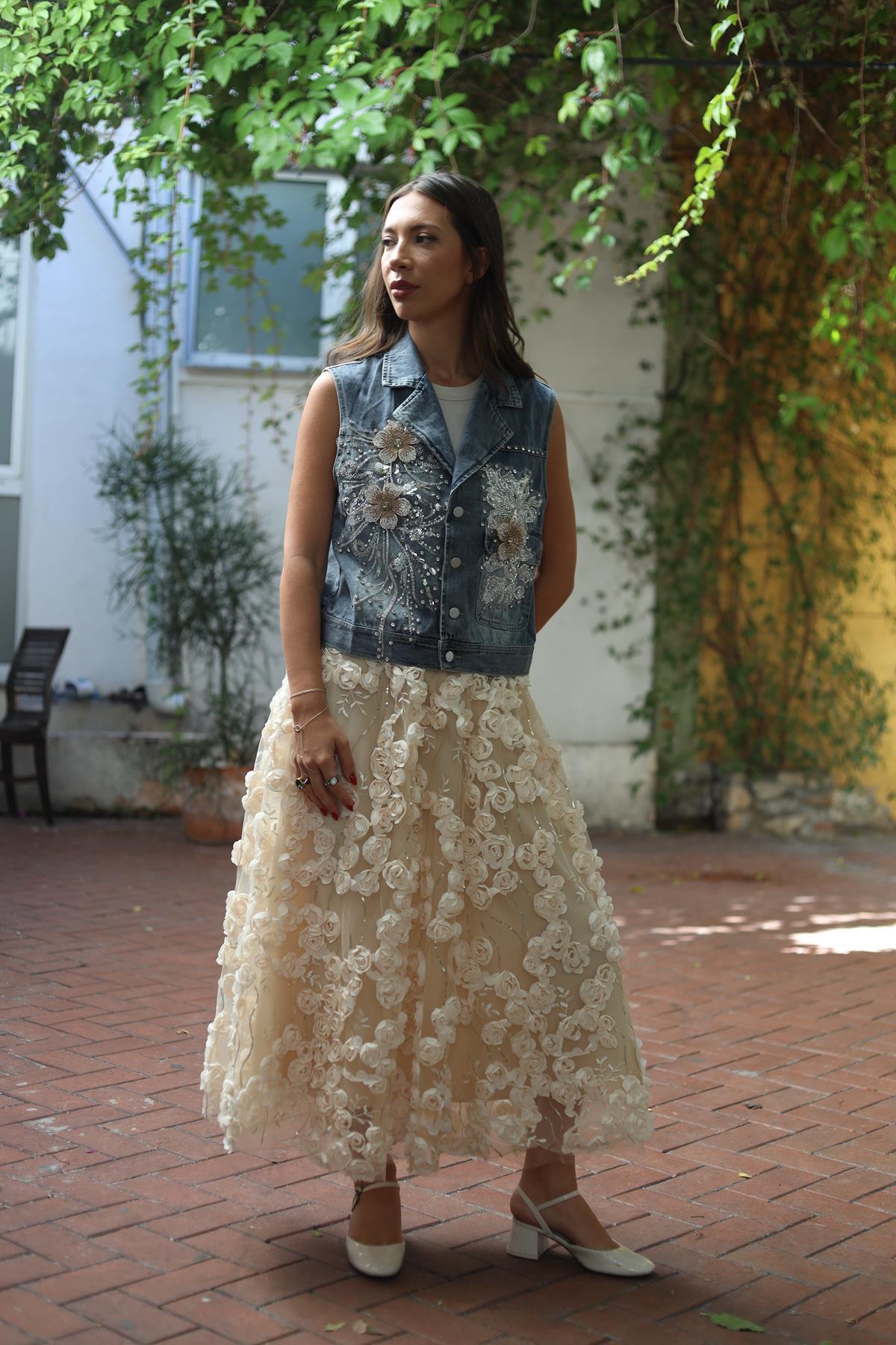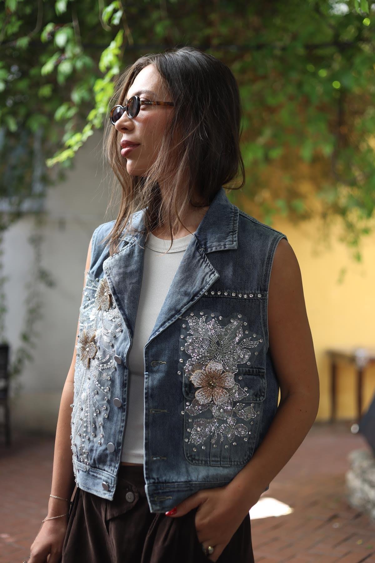 Mavi Taş İşlemeli Otantik Kot Yelek