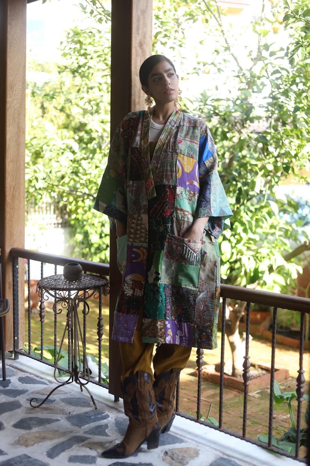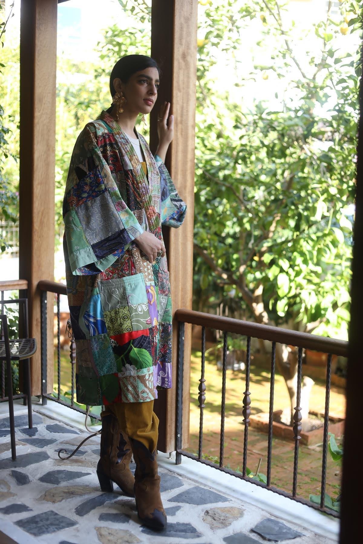 Mint Yeşili Tasarım Patchwork Kaftan (KKFN-TS-003-PA-MYE-STD)