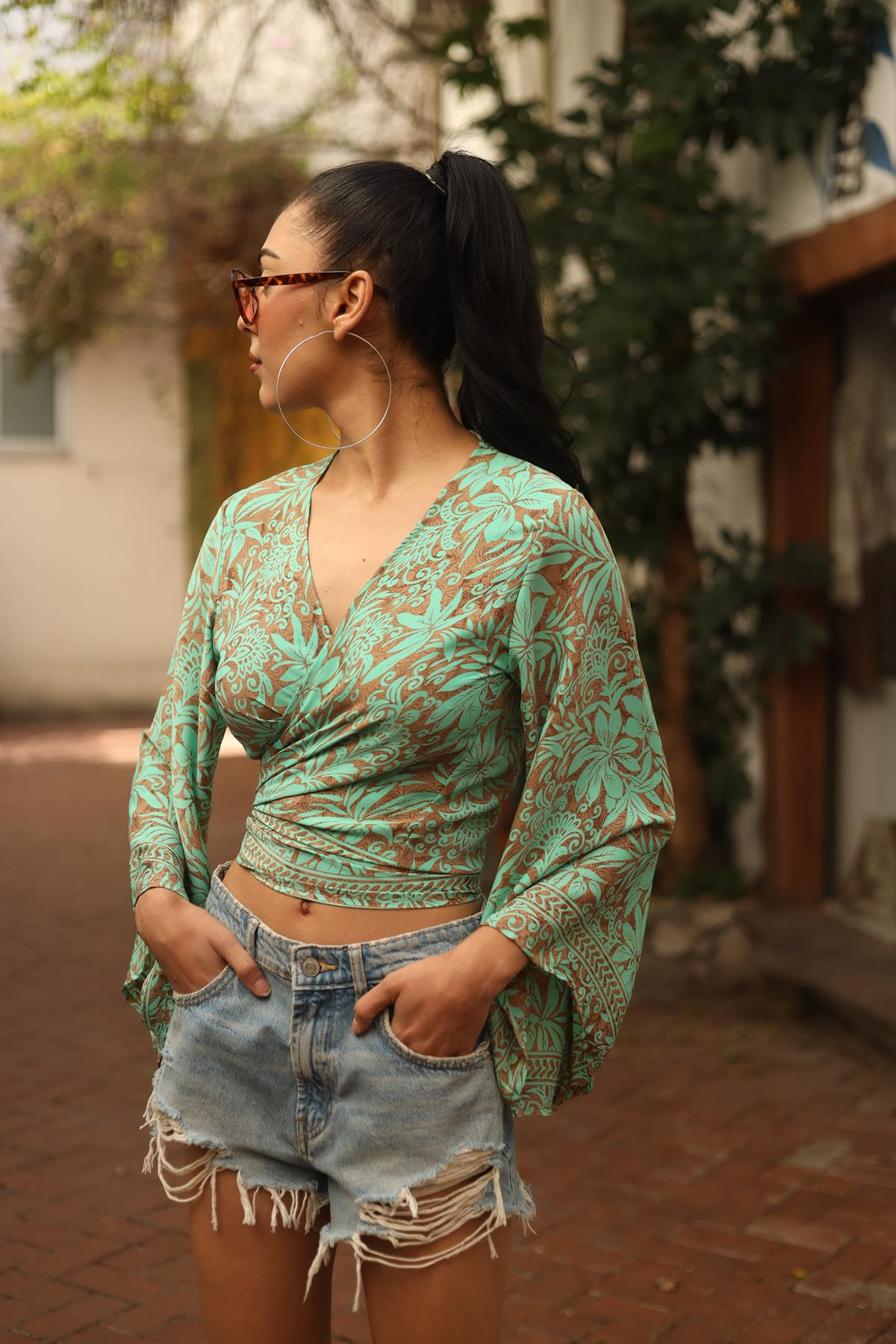 Mint Yeşili Uzun Kollu İpek Bolero