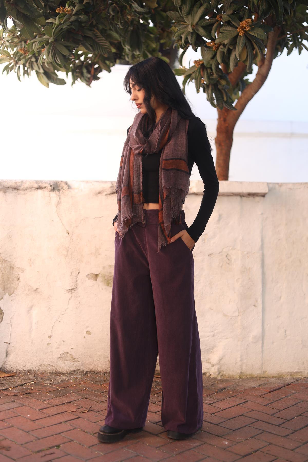 Mor Beli Çift Düğmeli Kadife Pantolon (KP-FAL-039-PA-MO-STD)