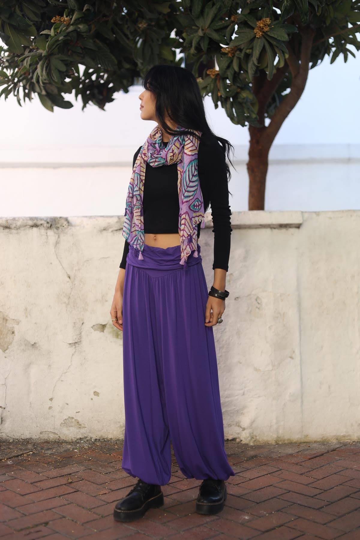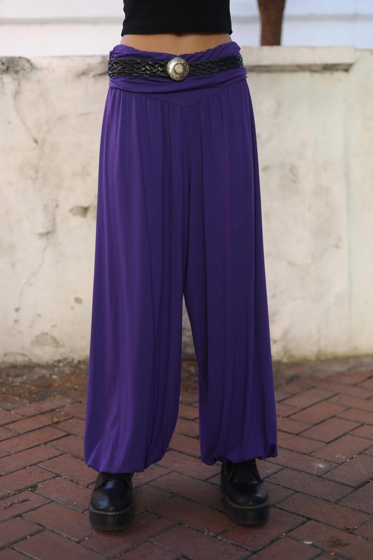Mor Beli Drapeli Paçası Lastikli Şalvar Pantolon (KP-LAM-006-VI-MO2-STD)