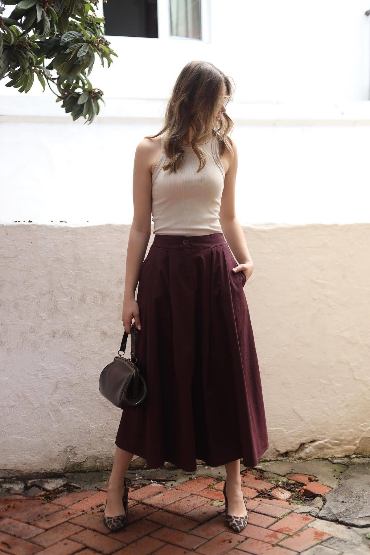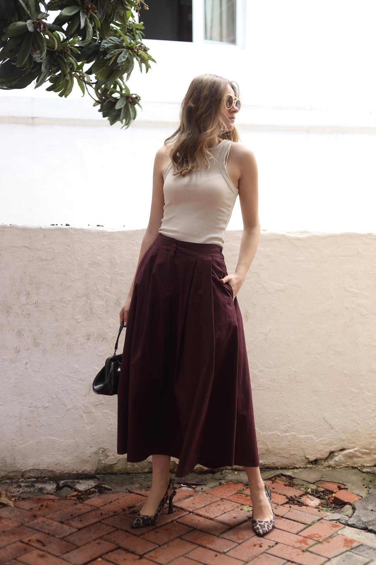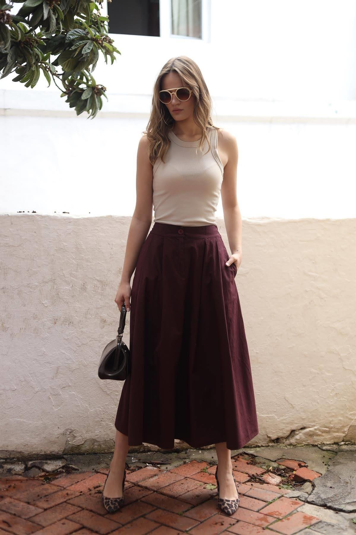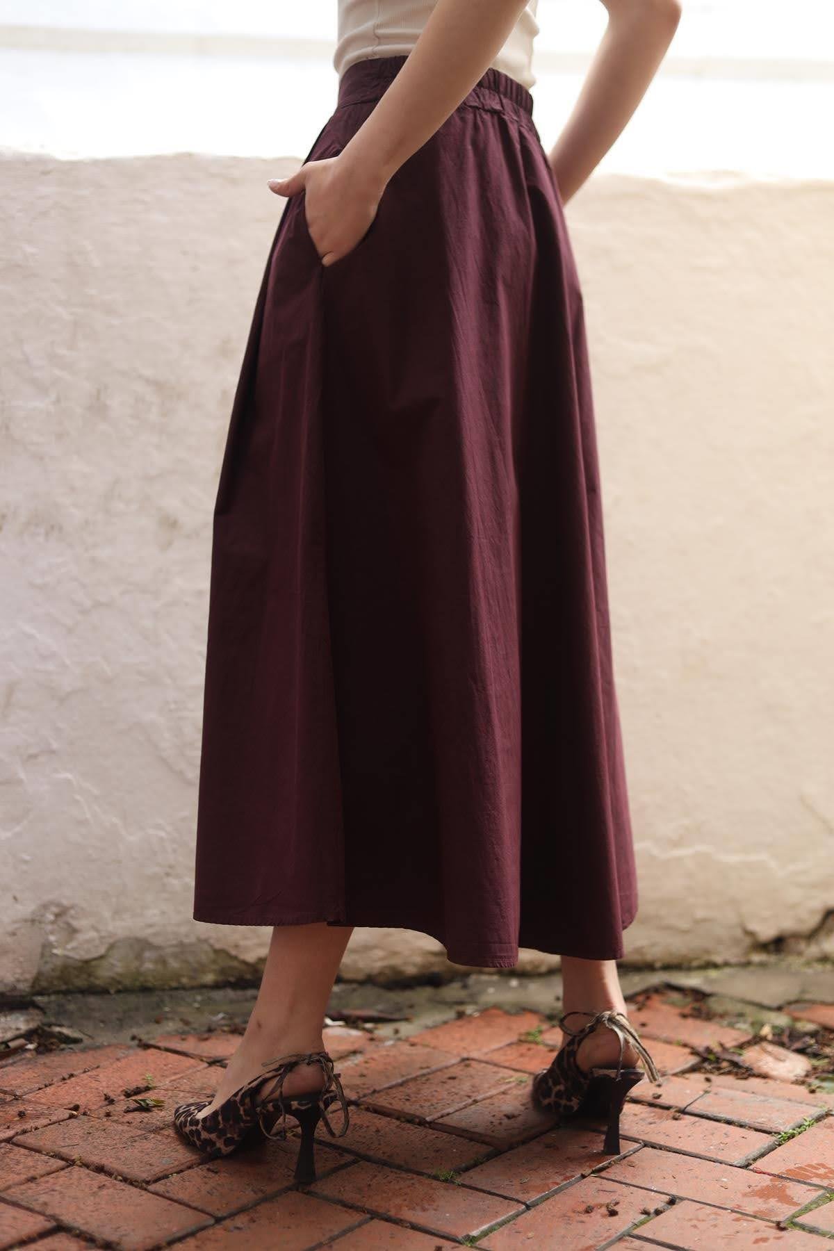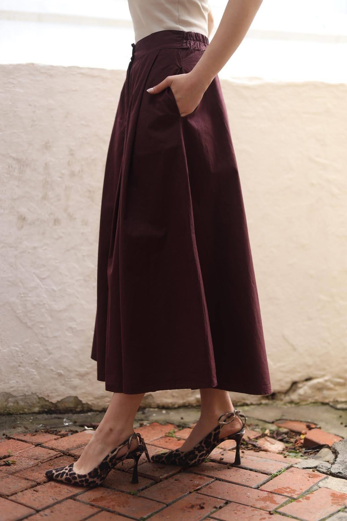 Mürdüm Rengi Pileli Önü Düğmeli Kloş Etek (KET-CR-001-PA-MU-S)