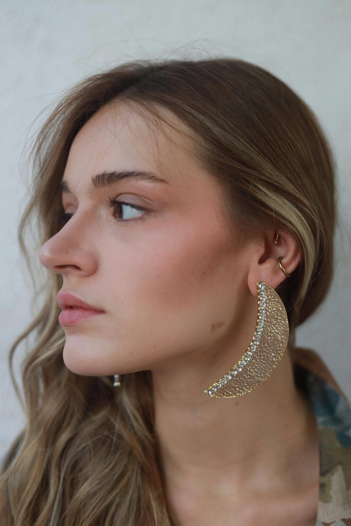 Parlak Taş Detaylı Ay Küpe (TA-KU-1143)