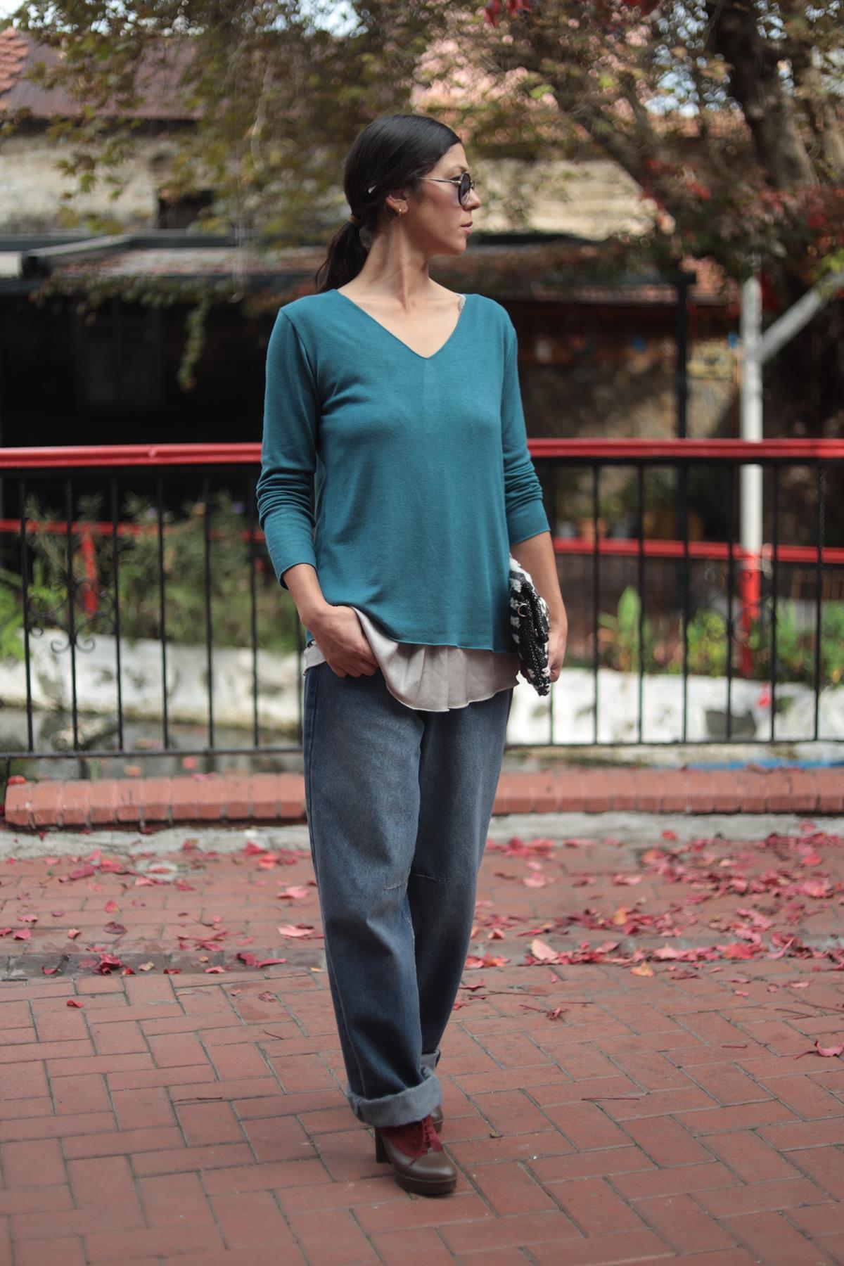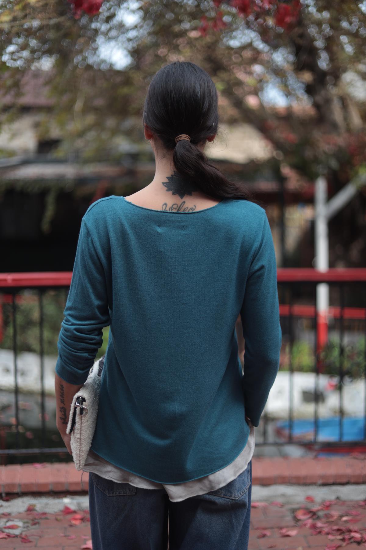 Petrol Mavisi Yumuşak Doku V Yaka Bluz (KB-PM-061-VI-PMA-STD)