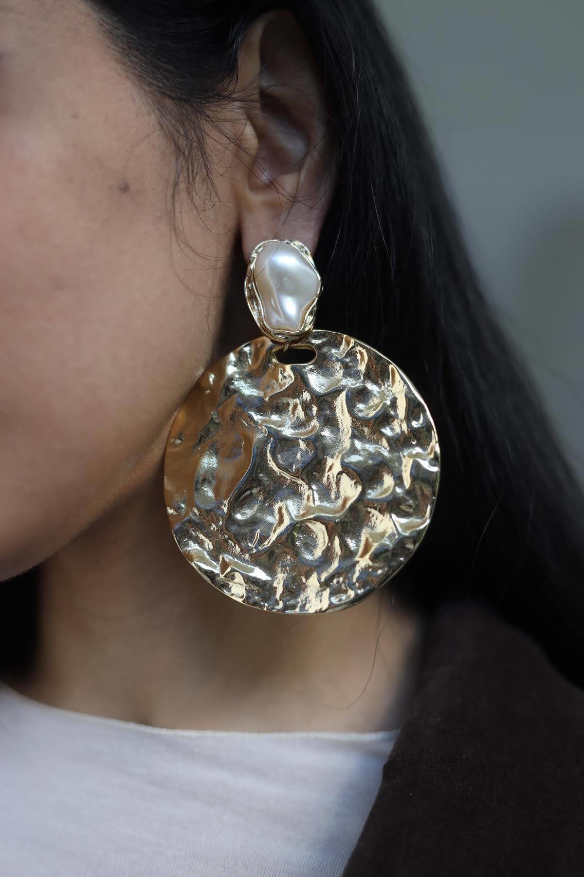 Pirinç Üstü Kaplama İncili Yuvarlak Küpe