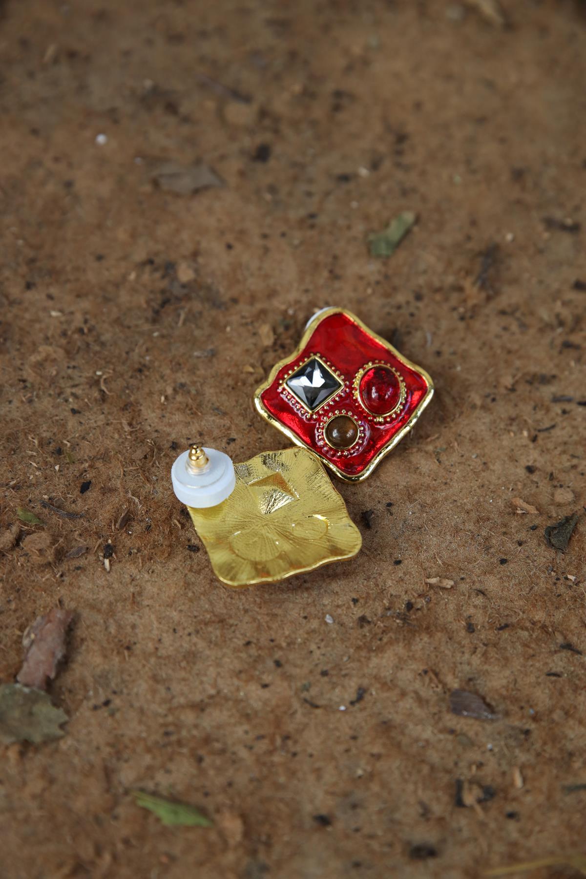 Renkli Taş Detaylı Gold Küpe (TA-KU-1010)